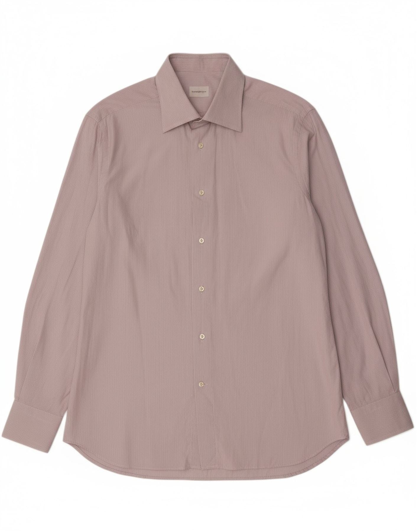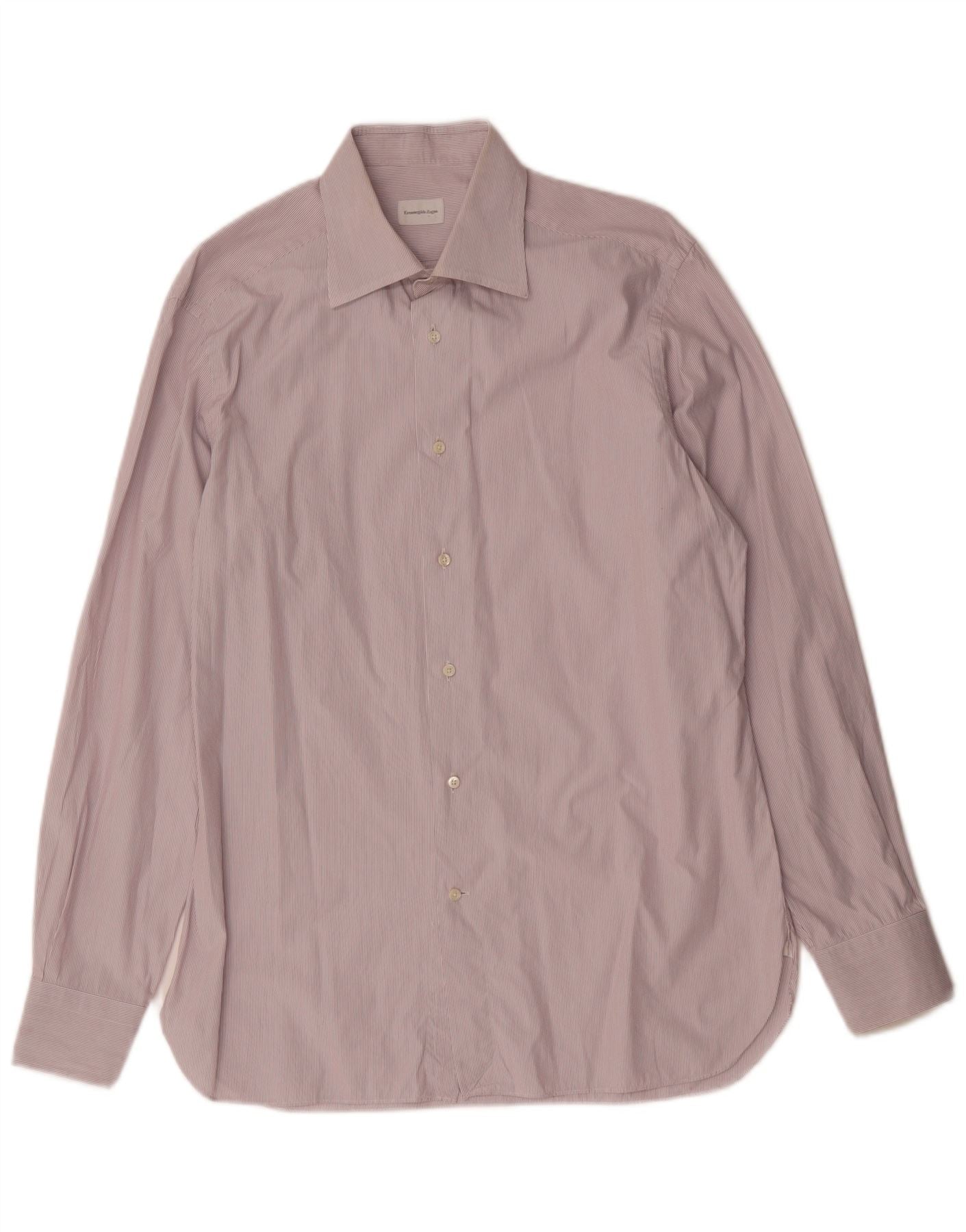 ERMENEGILDO ZEGNA Camisa masculina slim fit tamanho 42 16 1/2 risca de giz grande rosa
