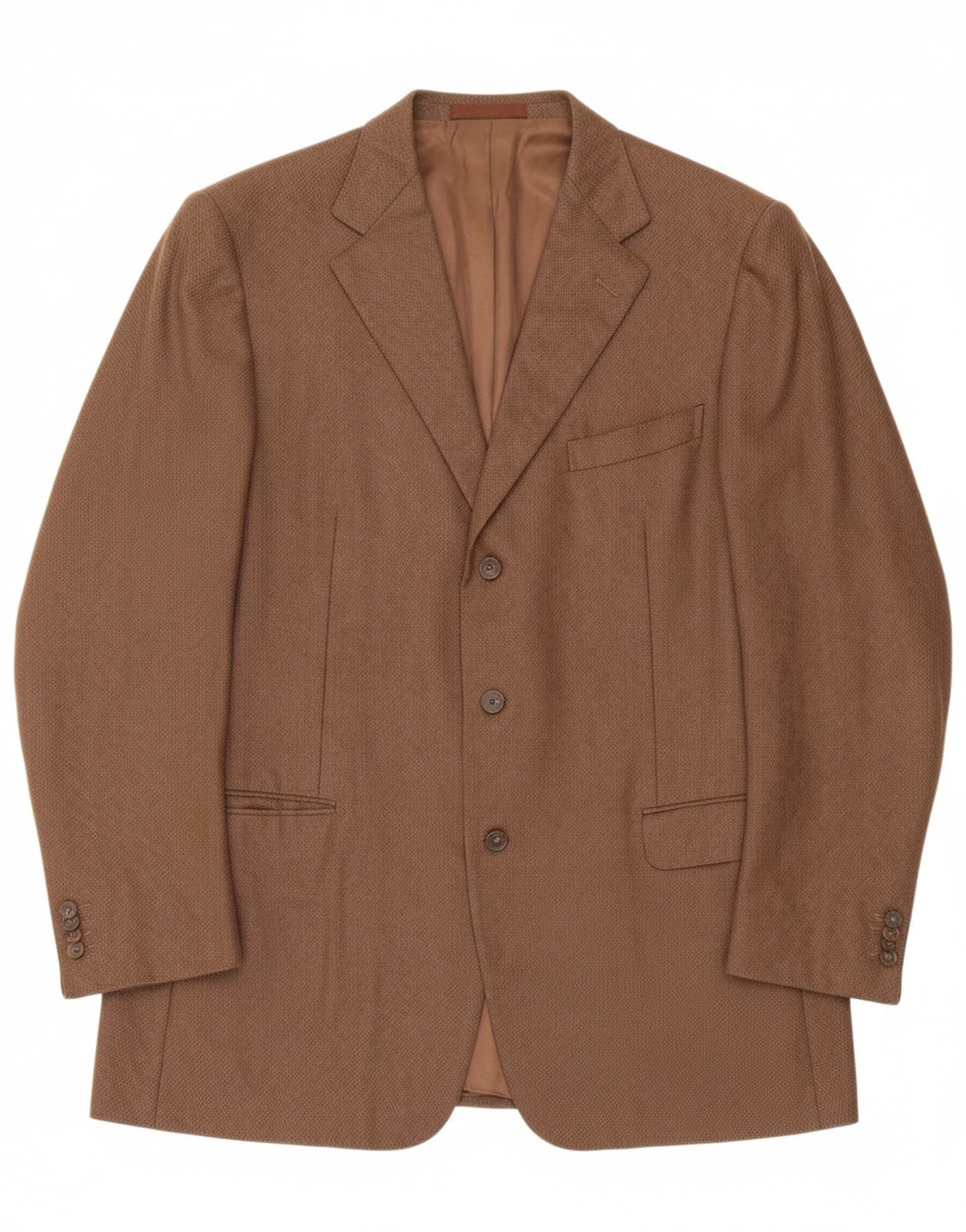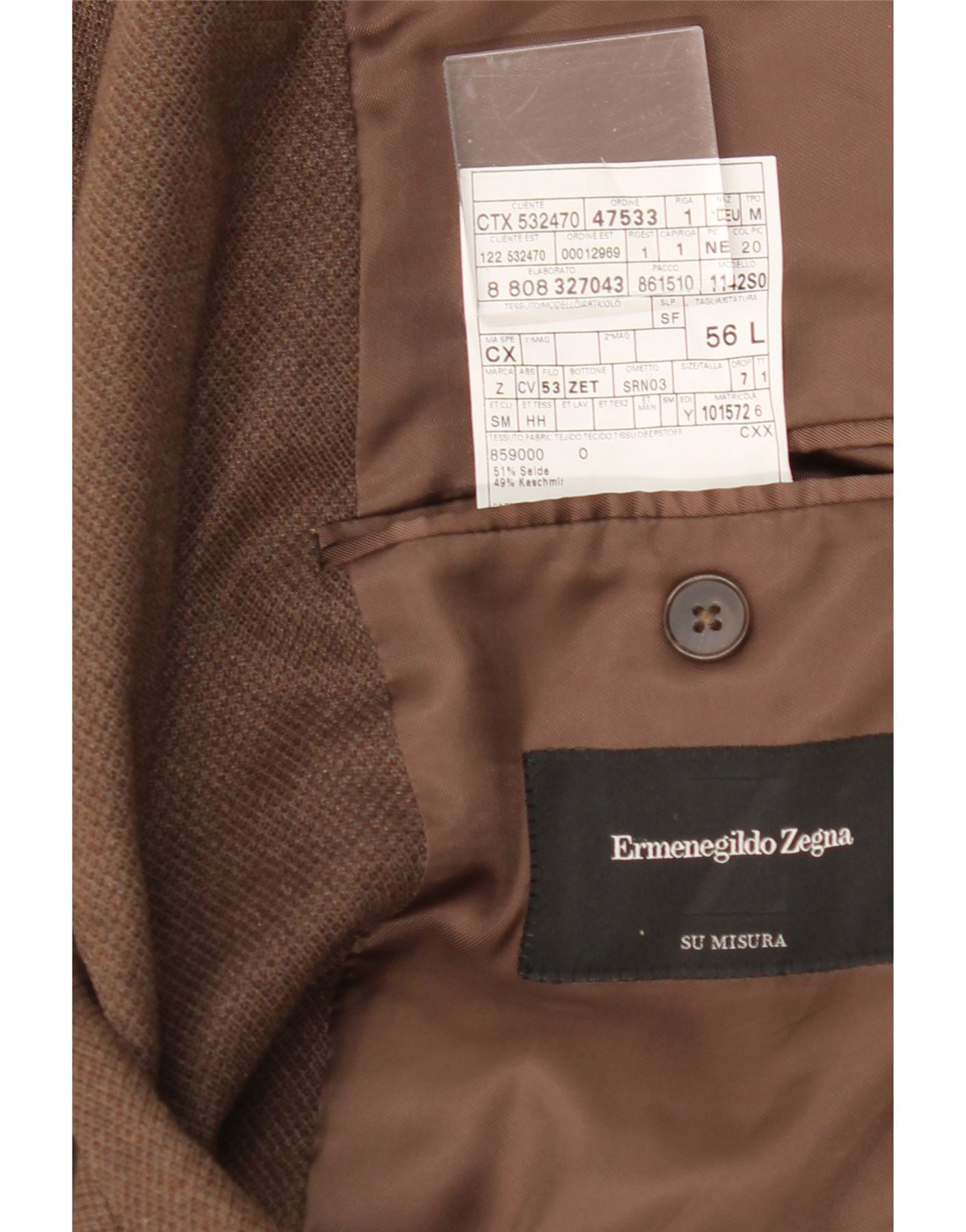 ERMENEGILDO ZEGNA Jaqueta blazer masculina de 3 botões IT 56 XL marrom seda