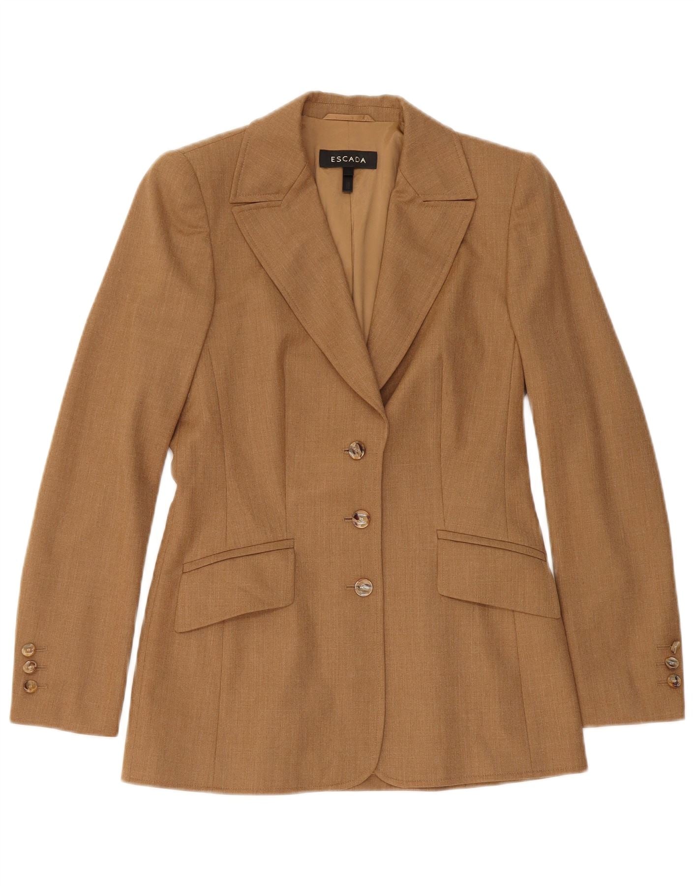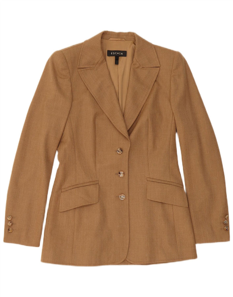ESCADA Jaqueta Blazer Feminina com 3 Botões Reino Unido 10 Pequena Lã Bege