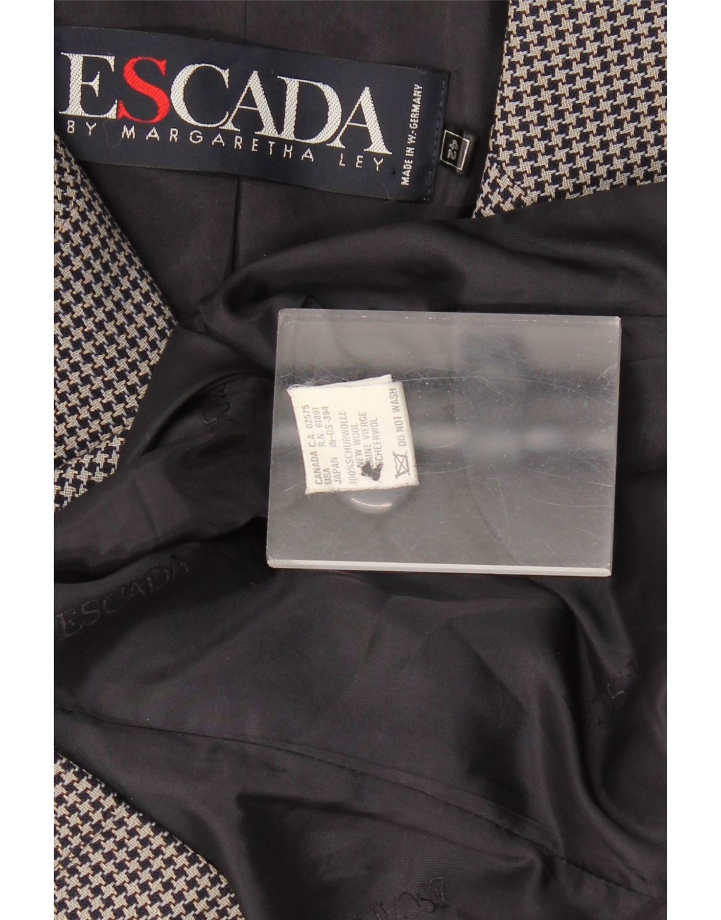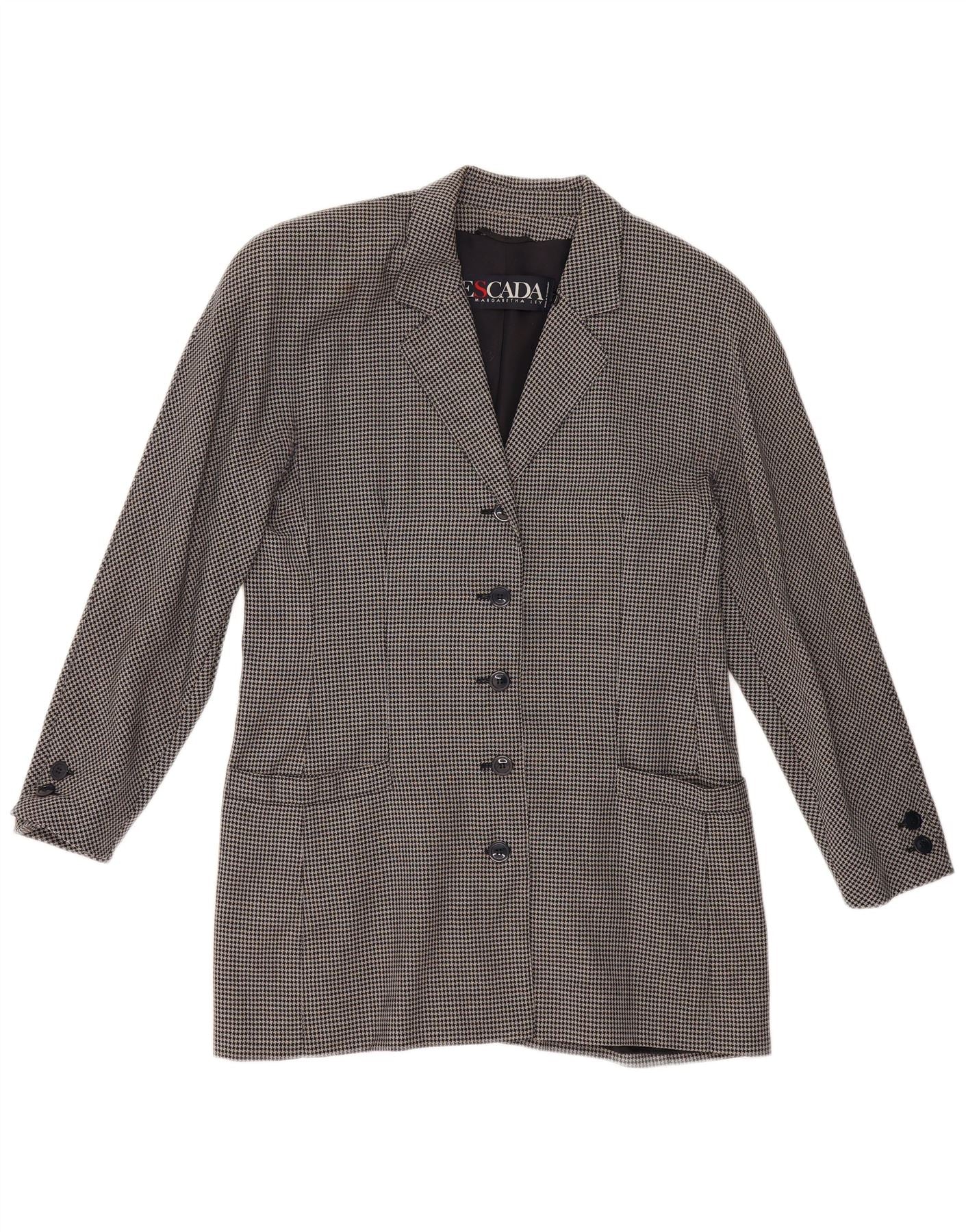 ESCADA Jaqueta Blazer Feminina com 5 Botões EU 42 Grande Azul Marinho Houndstooth
