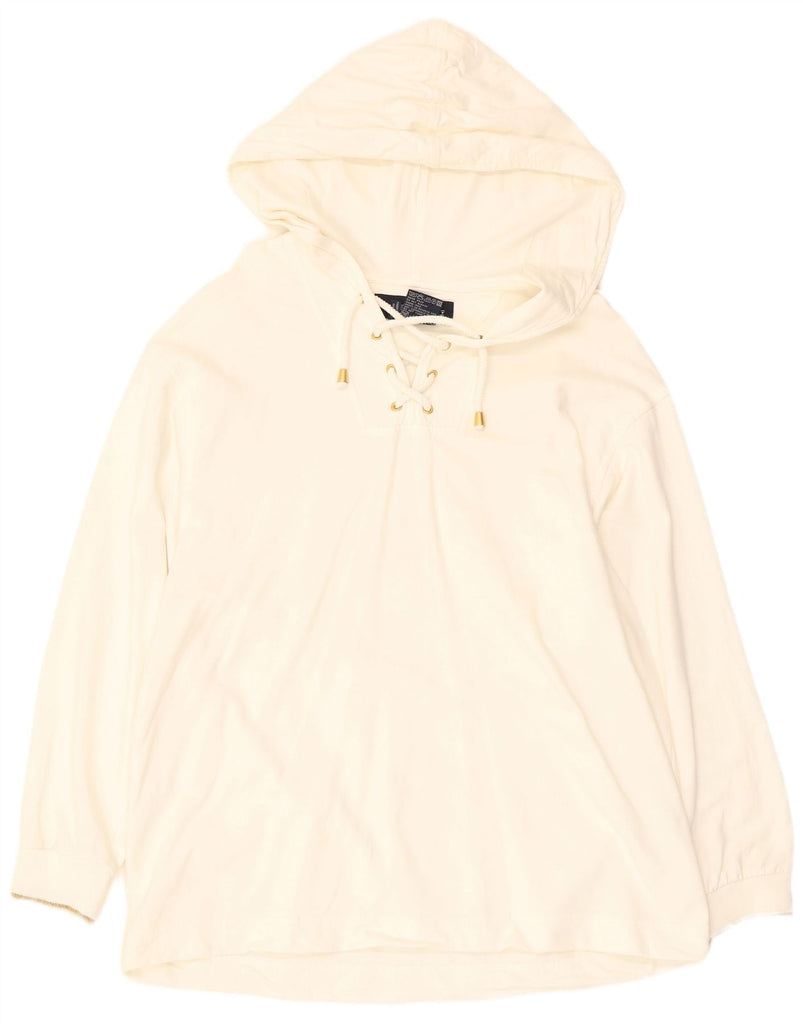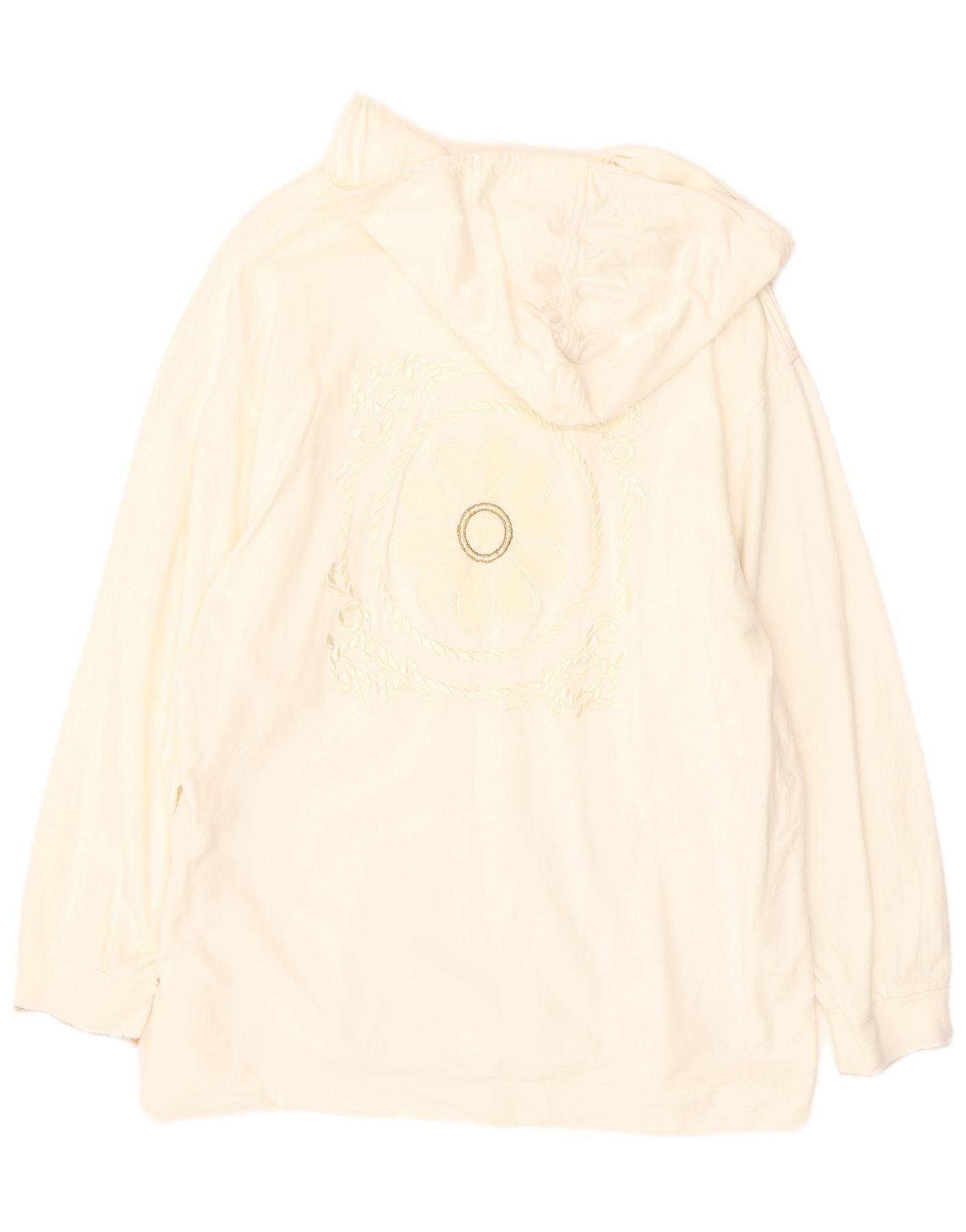 ESCADA moletom feminino com capuz gráfico UK 16 grande algodão floral branco