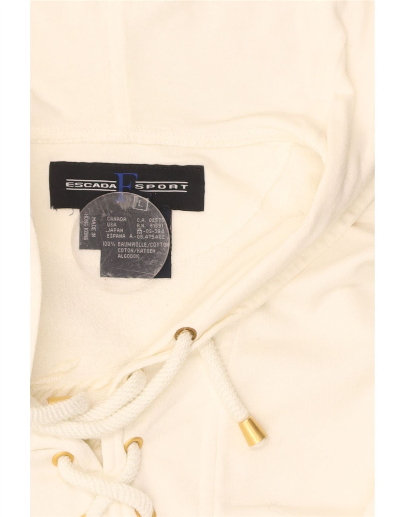 - Descrição da IA: Este suéter feminino com capuz Escada Sport é confeccionado em jersey macio 100% algodão esbranquiçado. Seu forro de lã oferece conforto excepcional. Apresenta um design clássico com capuz e mangas compridas. O ajuste regular garante uma silhueta confortável. Um design gráfico adiciona interesse visual. O fecho com cadarço no decote proporciona um detalhe ajustável. Detalhes sutis bordados completam o visual.