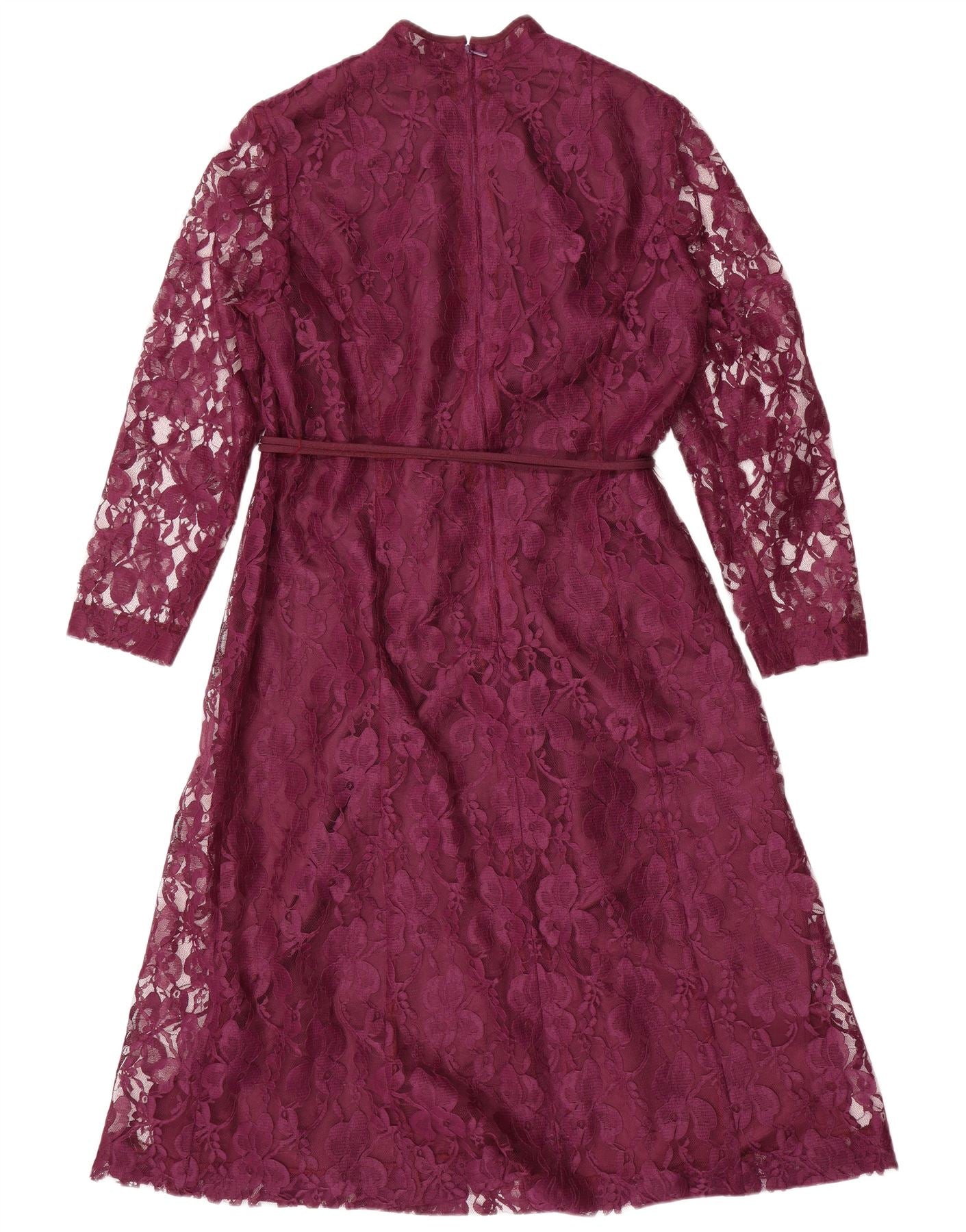 ESCO Vestido feminino de manga comprida evasê IT 46 grande roxo floral poliéster