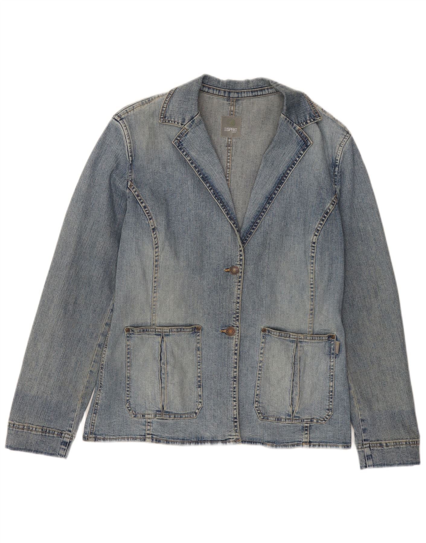 Jaqueta blazer jeans feminina ESPRIT com 2 botões Reino Unido 16 grande algodão azul