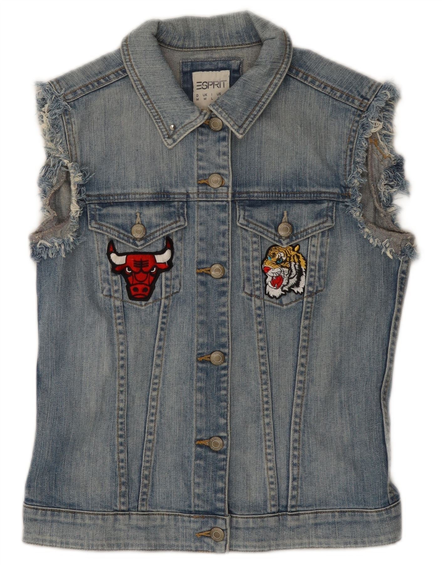 Colete jeans feminino ESPRIT Chicago Bulls gráfico Reino Unido 12 algodão azul médio