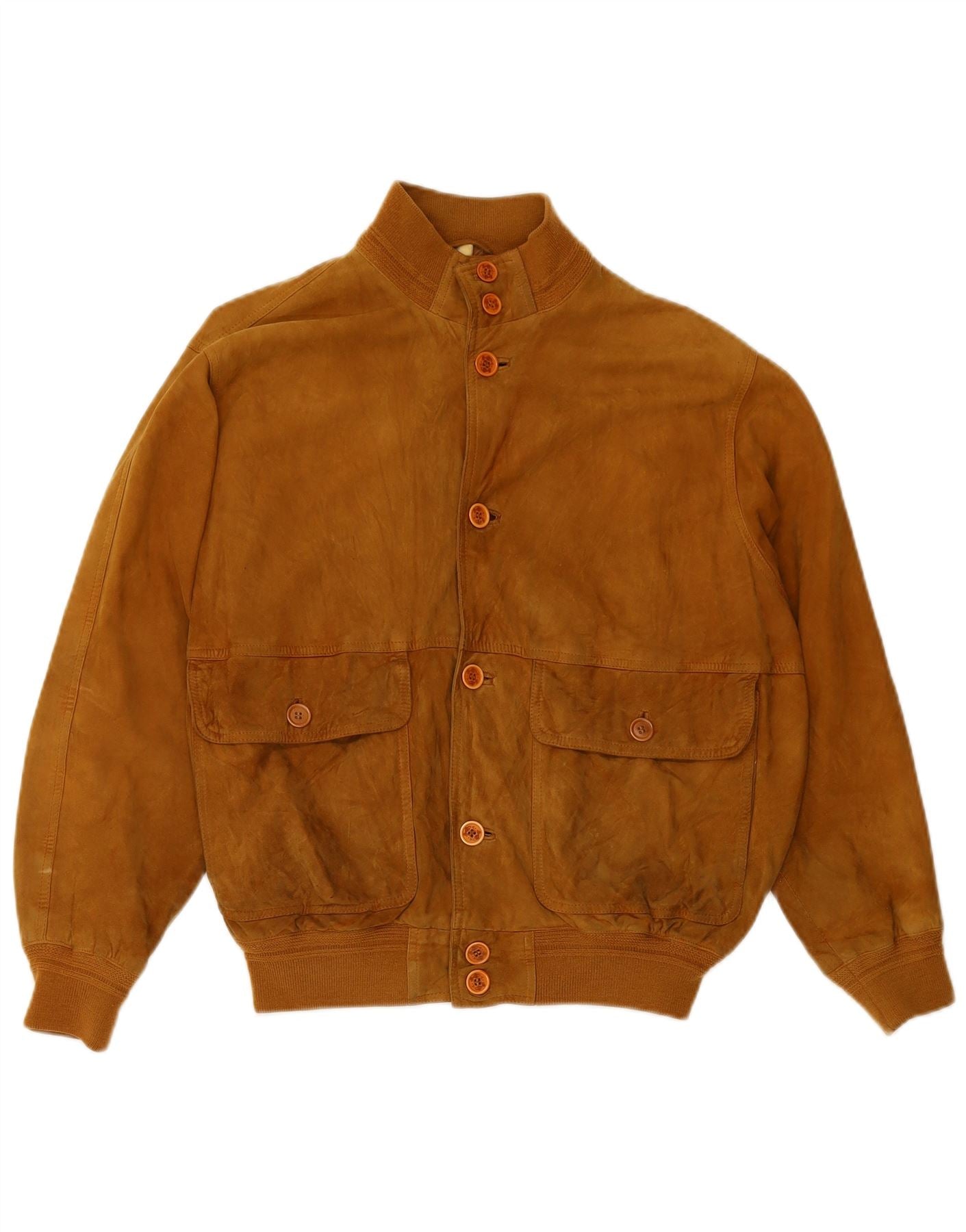 Jaqueta bomber masculina de camurça FABIO D Reino Unido 40 grande couro bege