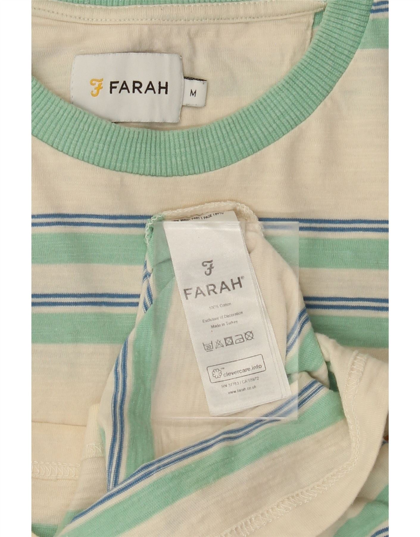 Camiseta masculina Farah Top médio de algodão listrado branco