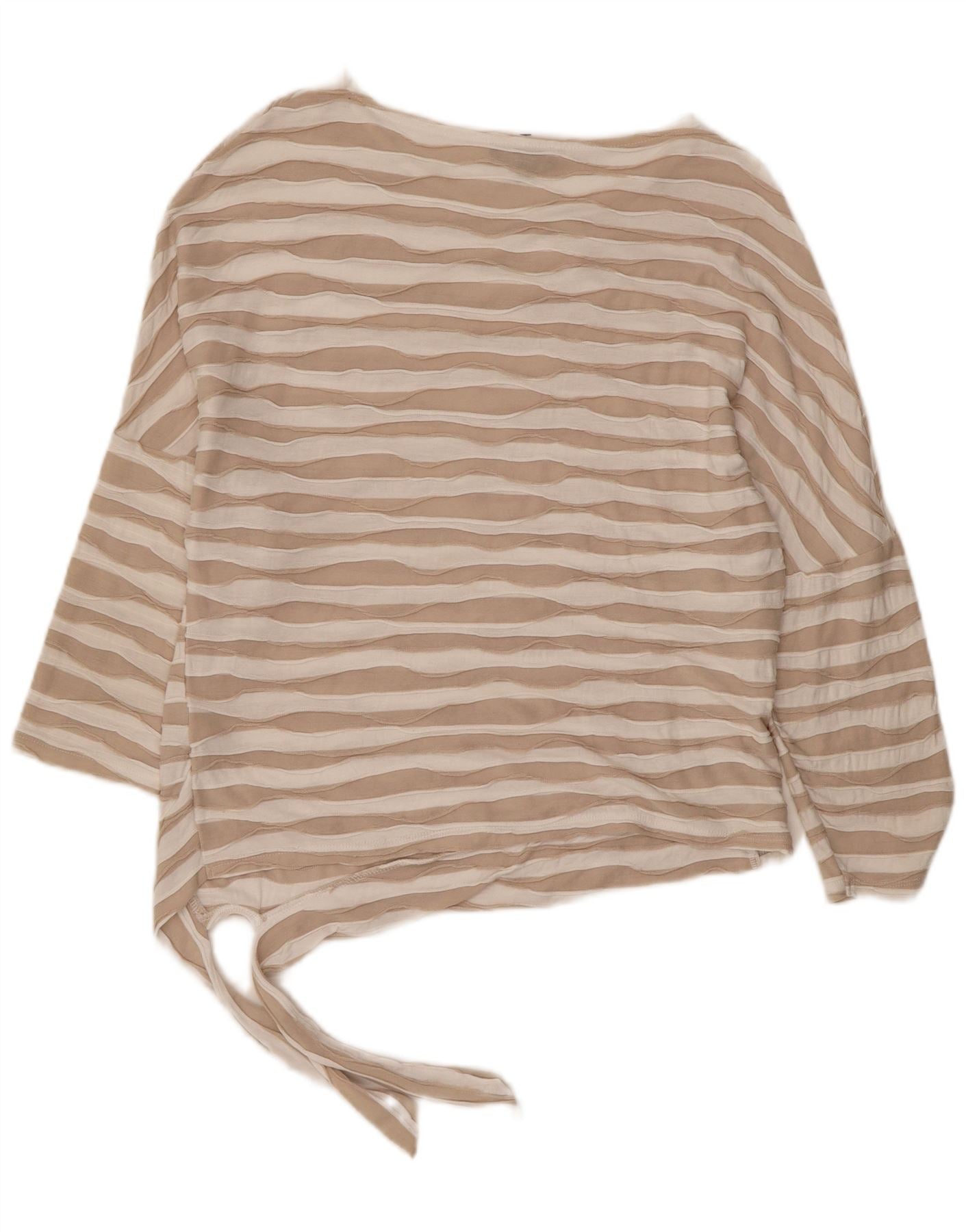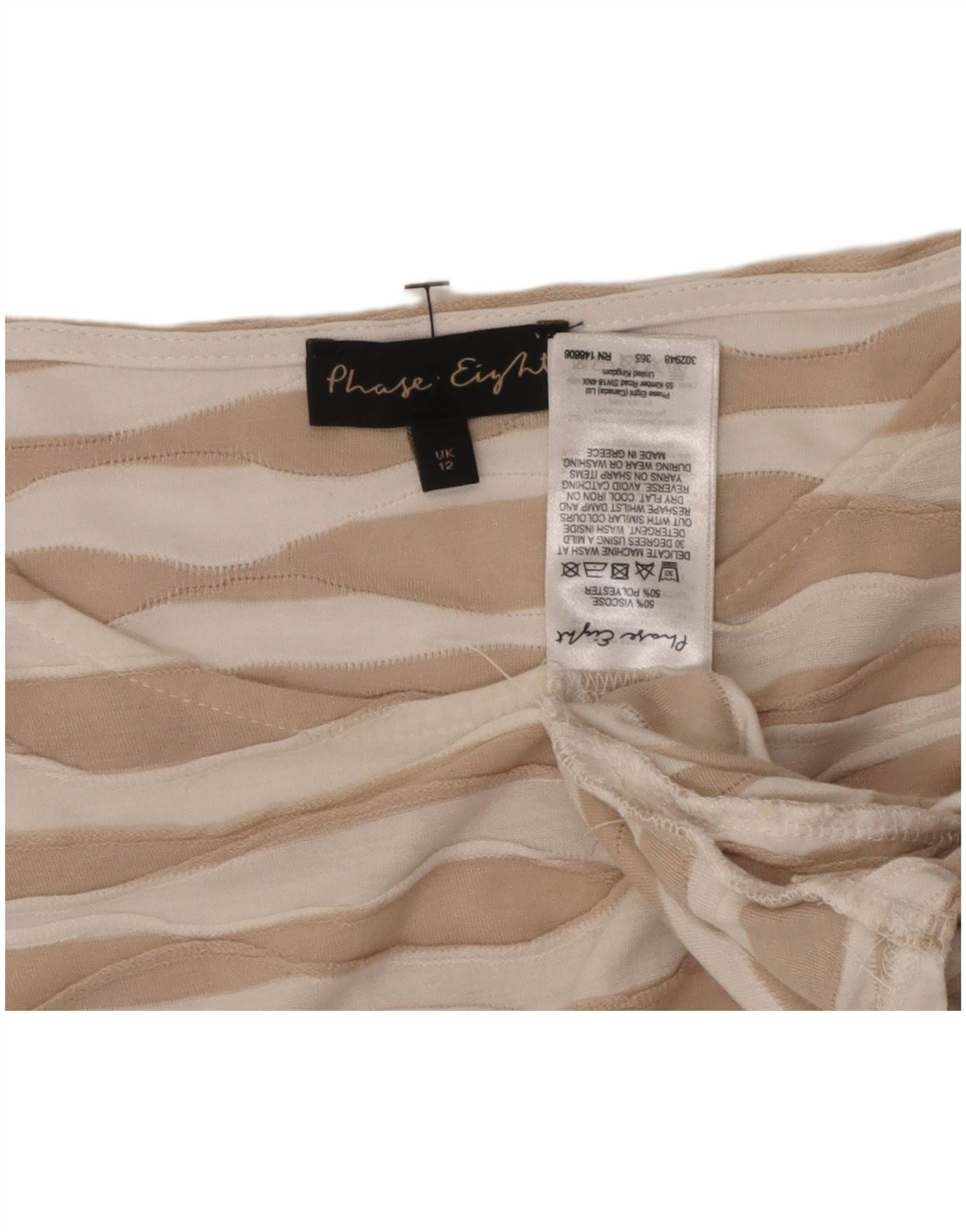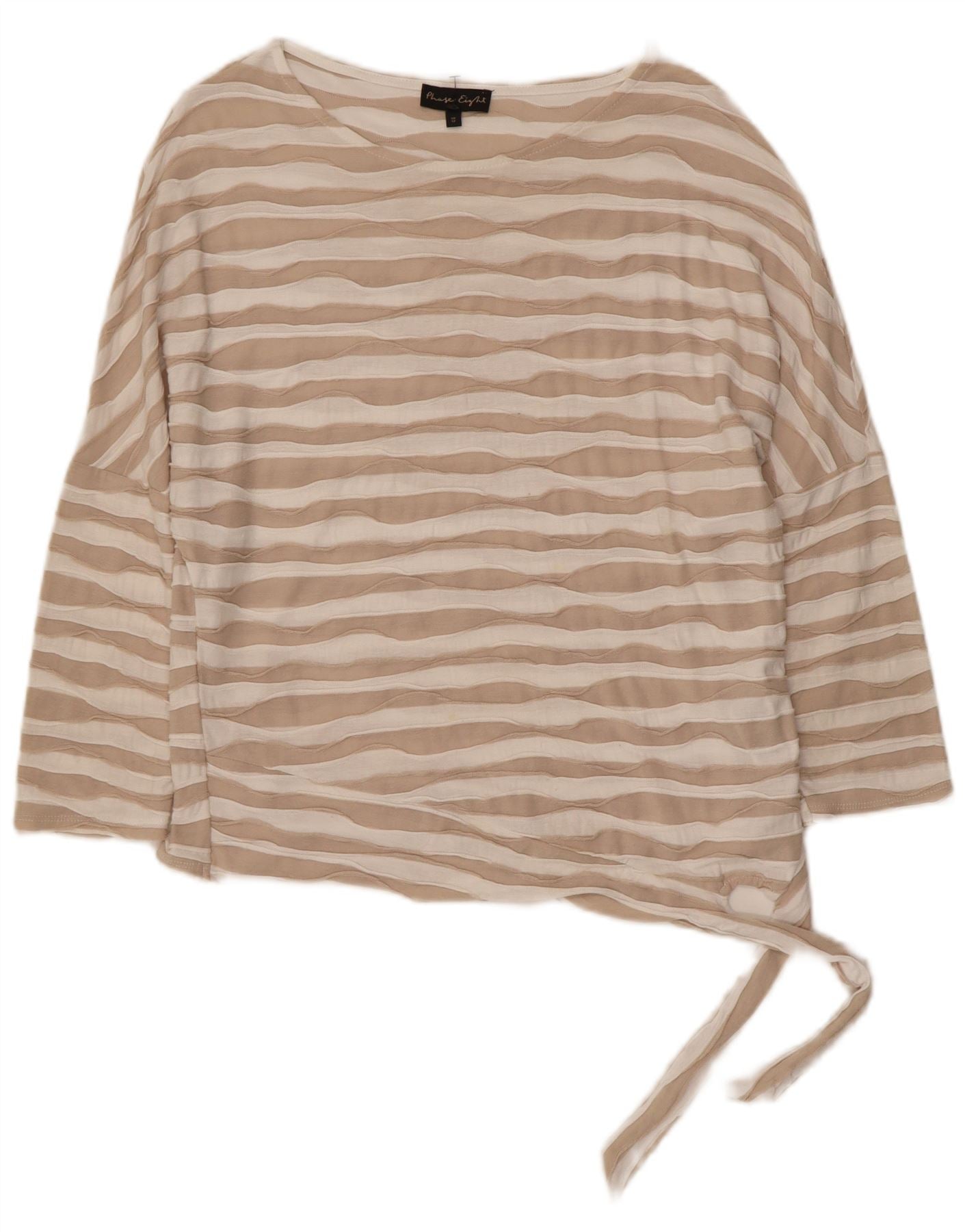 FASE EIGHT Top feminino manga 3/4 Reino Unido 12 viscose listrada bege médio