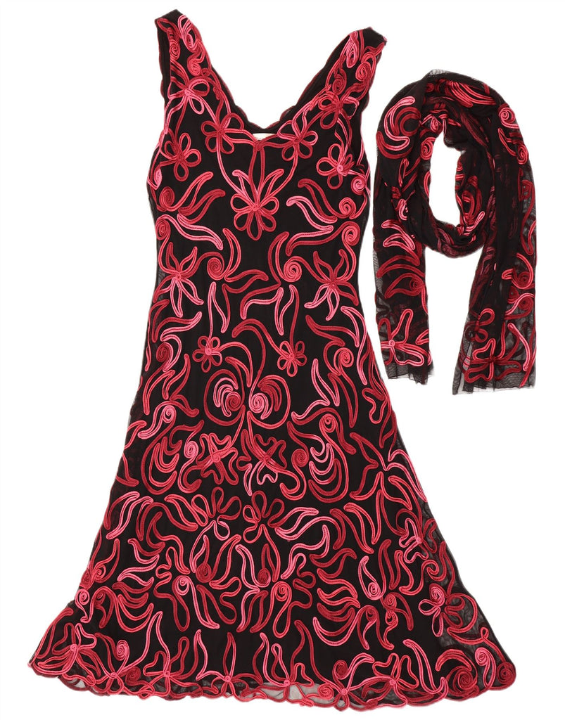 FASE OITO Vestido maxi feminino sem mangas Reino Unido 16 grande preto paisley nylon