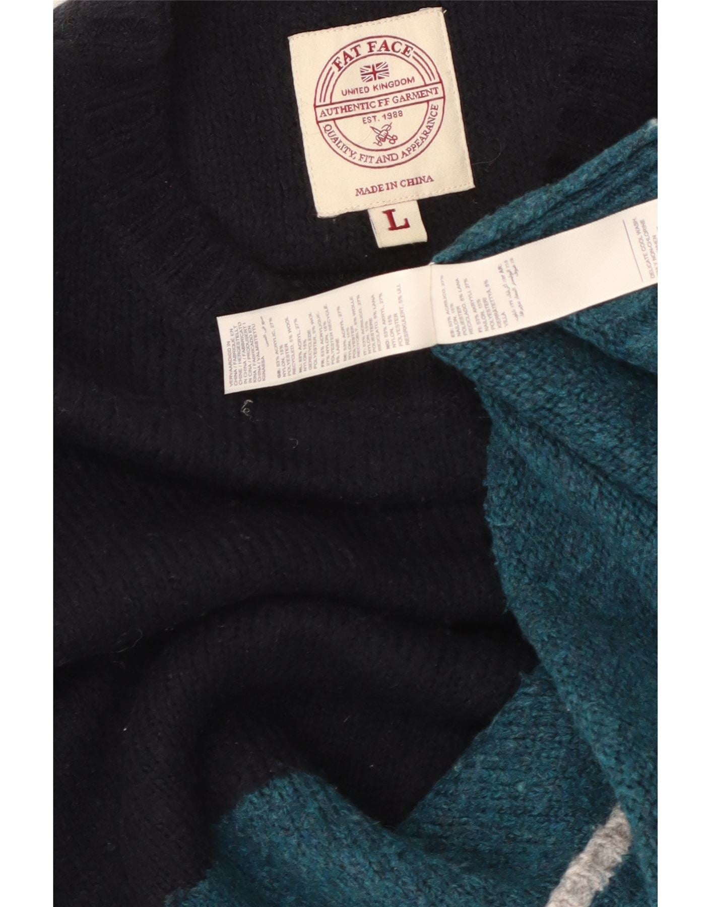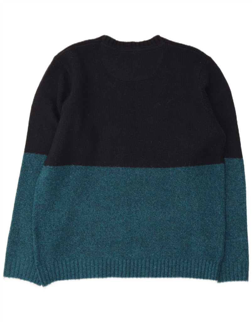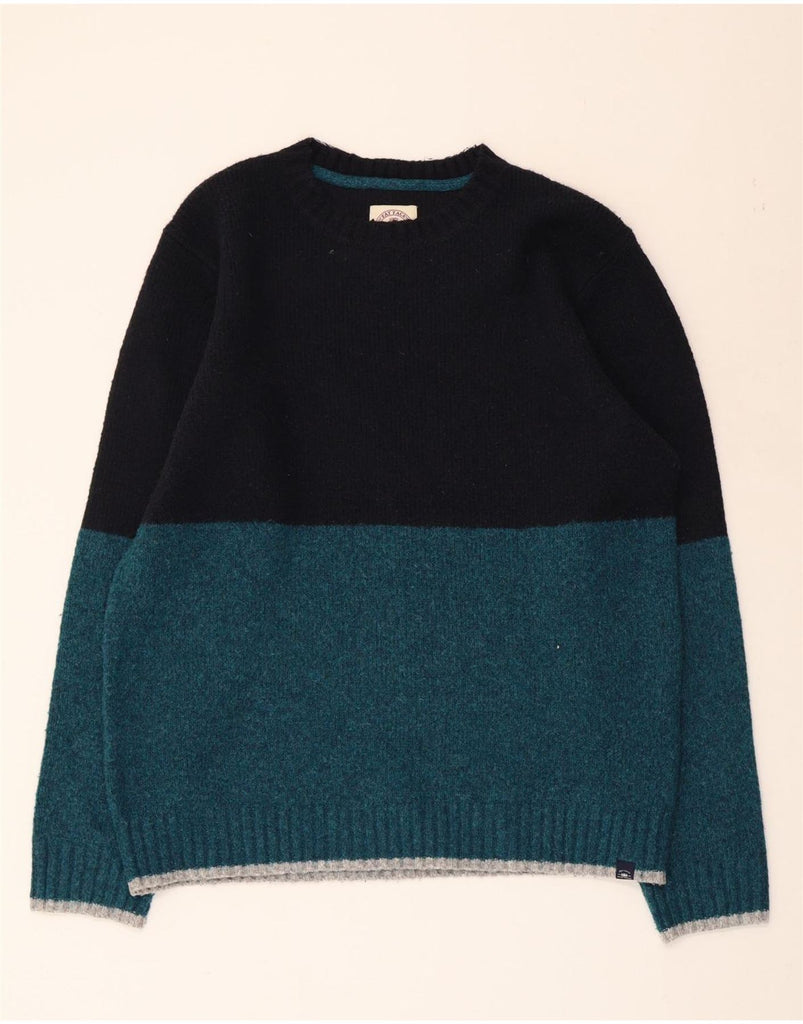 FAT FACE Mens Crew Neck Jumper Sweater Large Blue Colourblock Acrylic