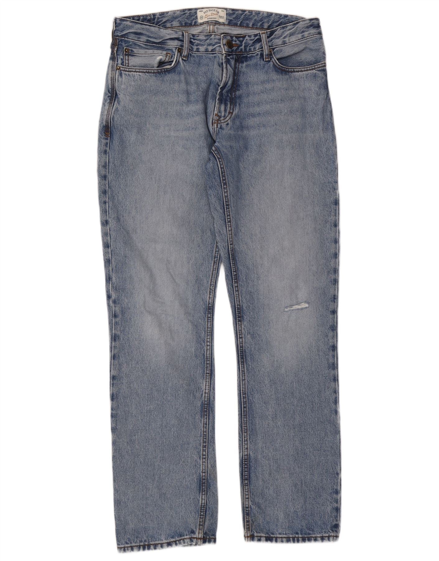 Calça jeans reta masculina Fat Face desgastada W30 L34 algodão azul