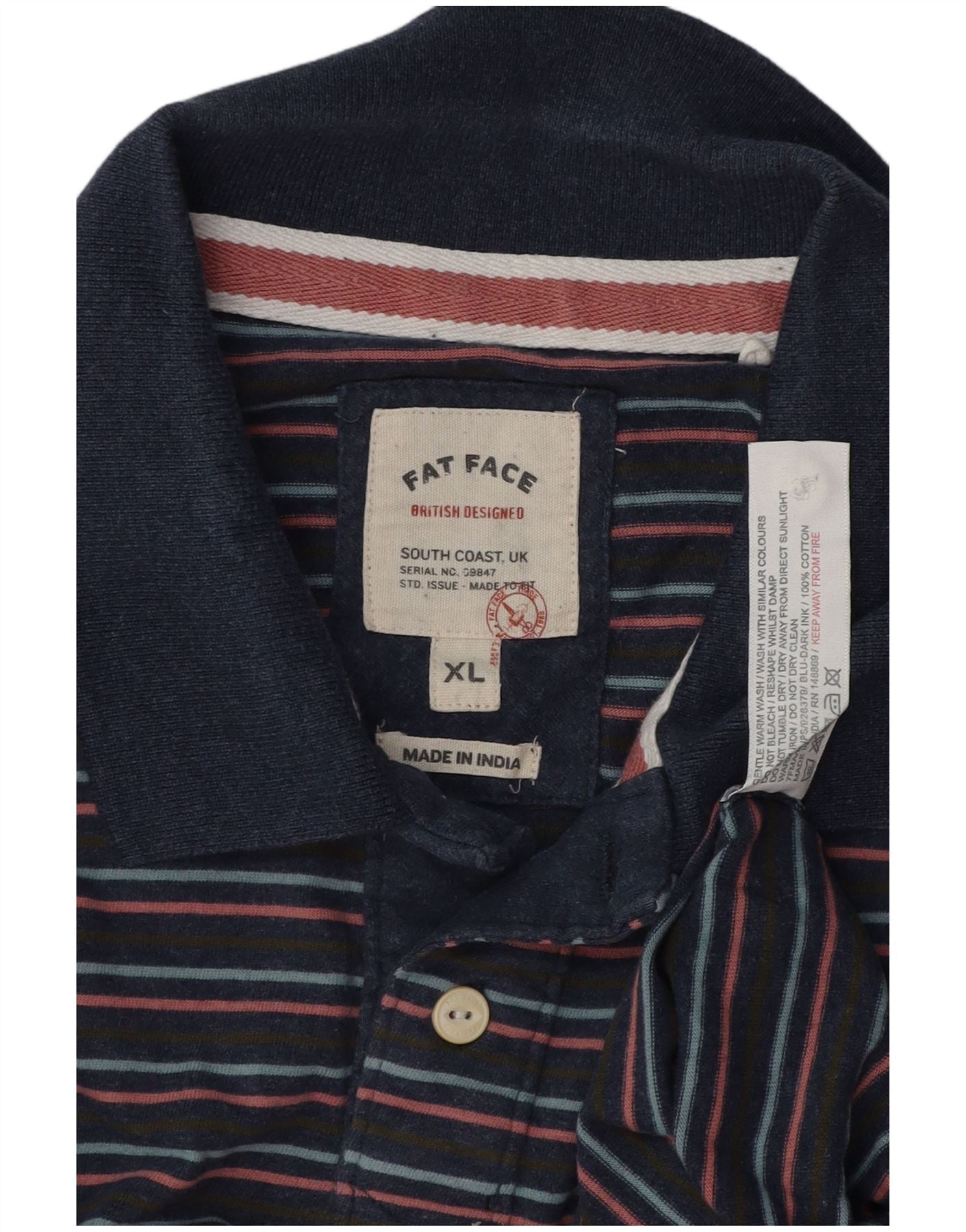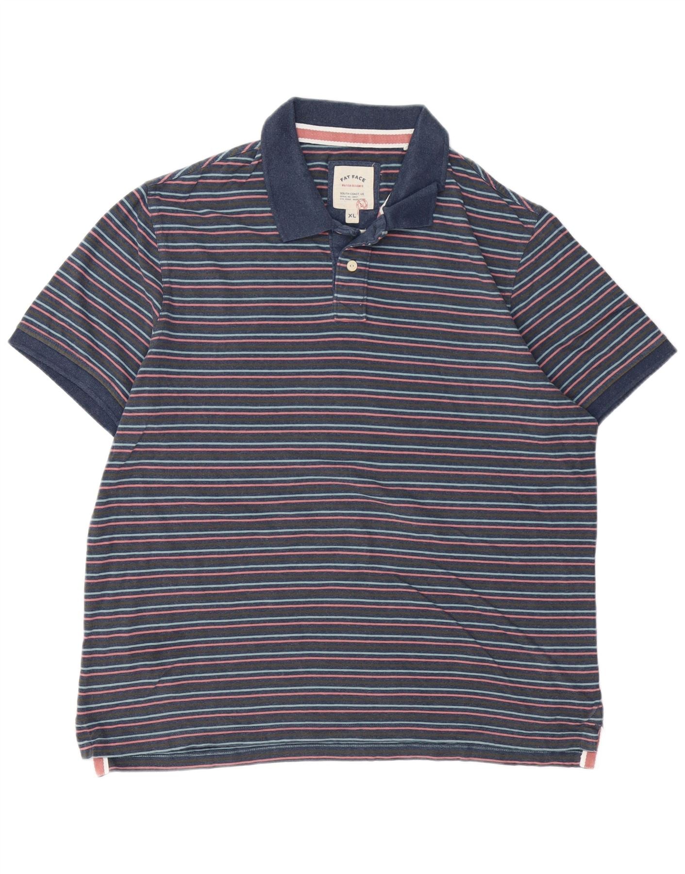 Camisa polo masculina FAT FACE XL algodão listrado azul marinho