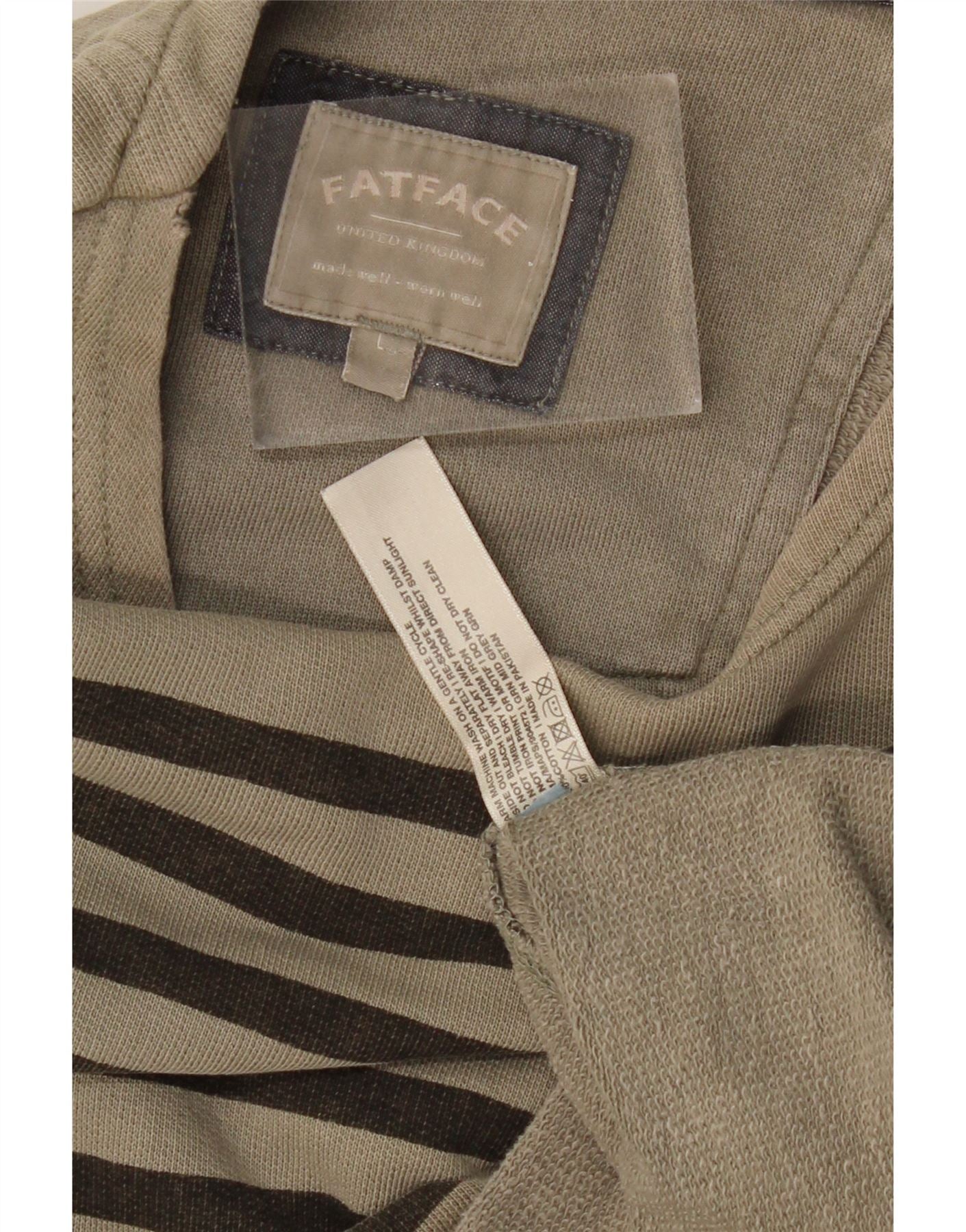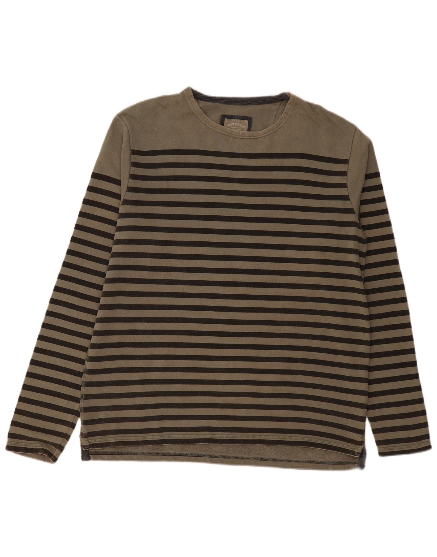 FAT FACE Mens Top Manga Longa Grande Algodão Listrado Cáqui