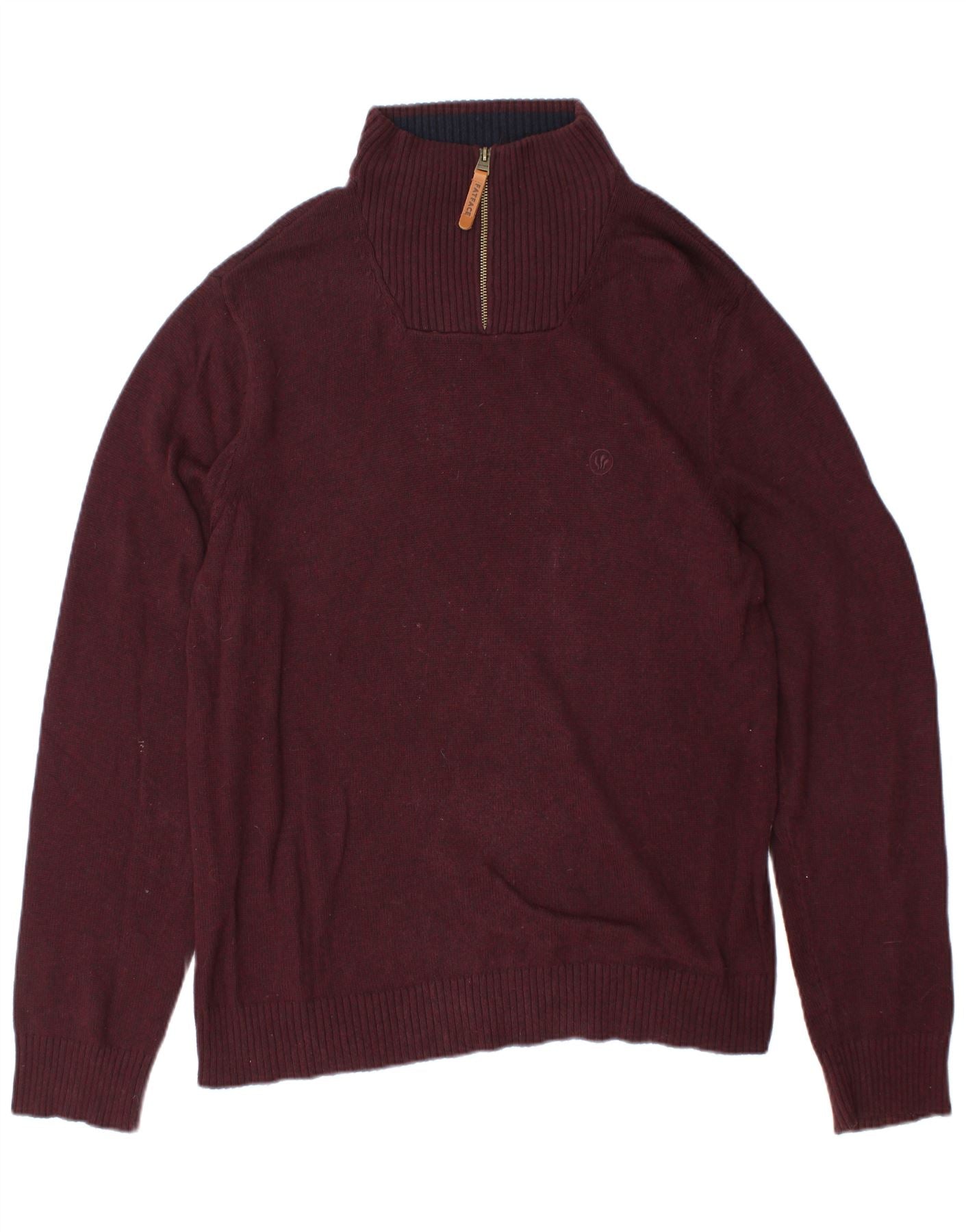 Suéter masculino FAT FACE com zíper e pescoço grande algodão Borgonha