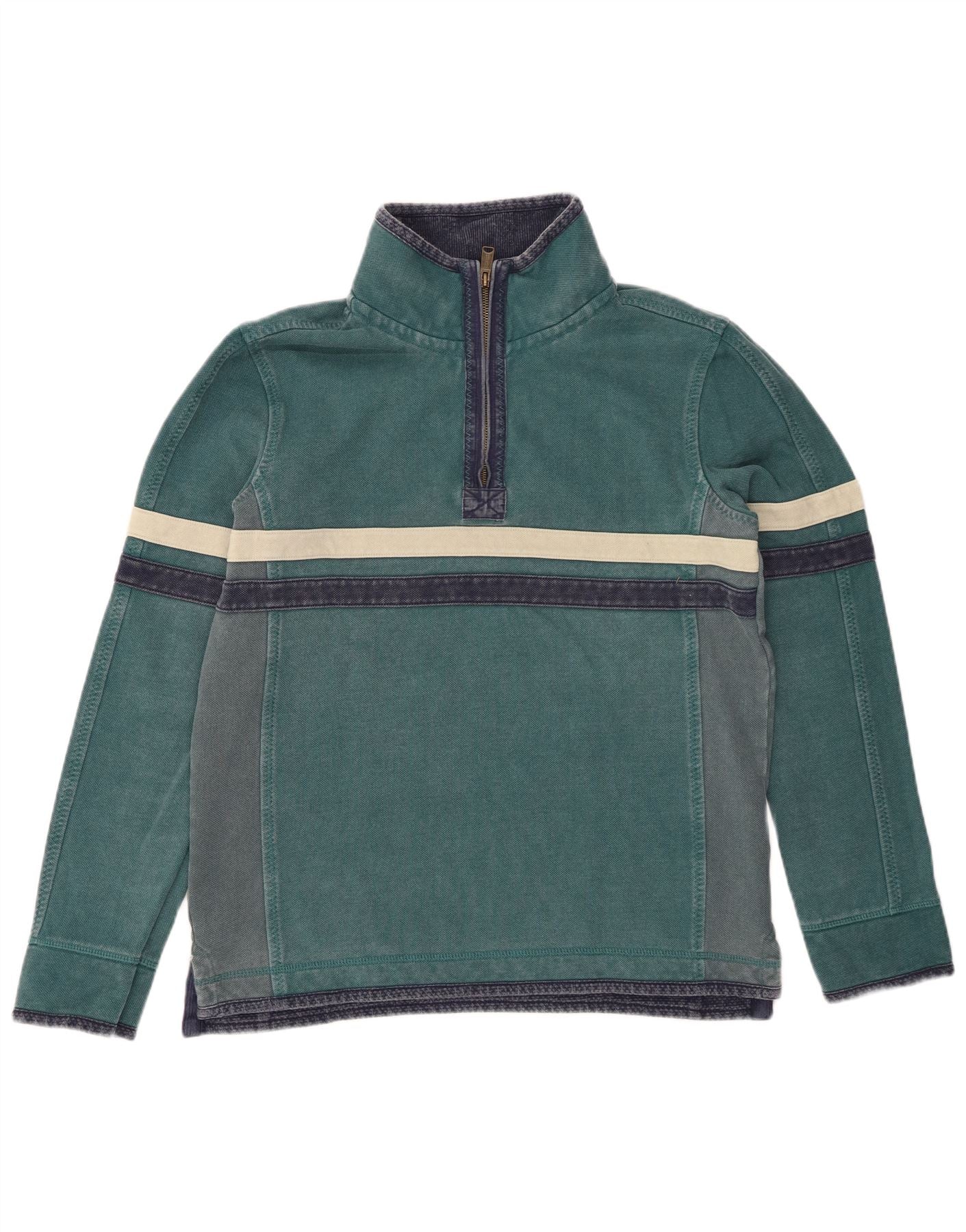 FAT FACE Mens Zip Neck Sweatshirt Jumper Medium Green Colourblock Cotton