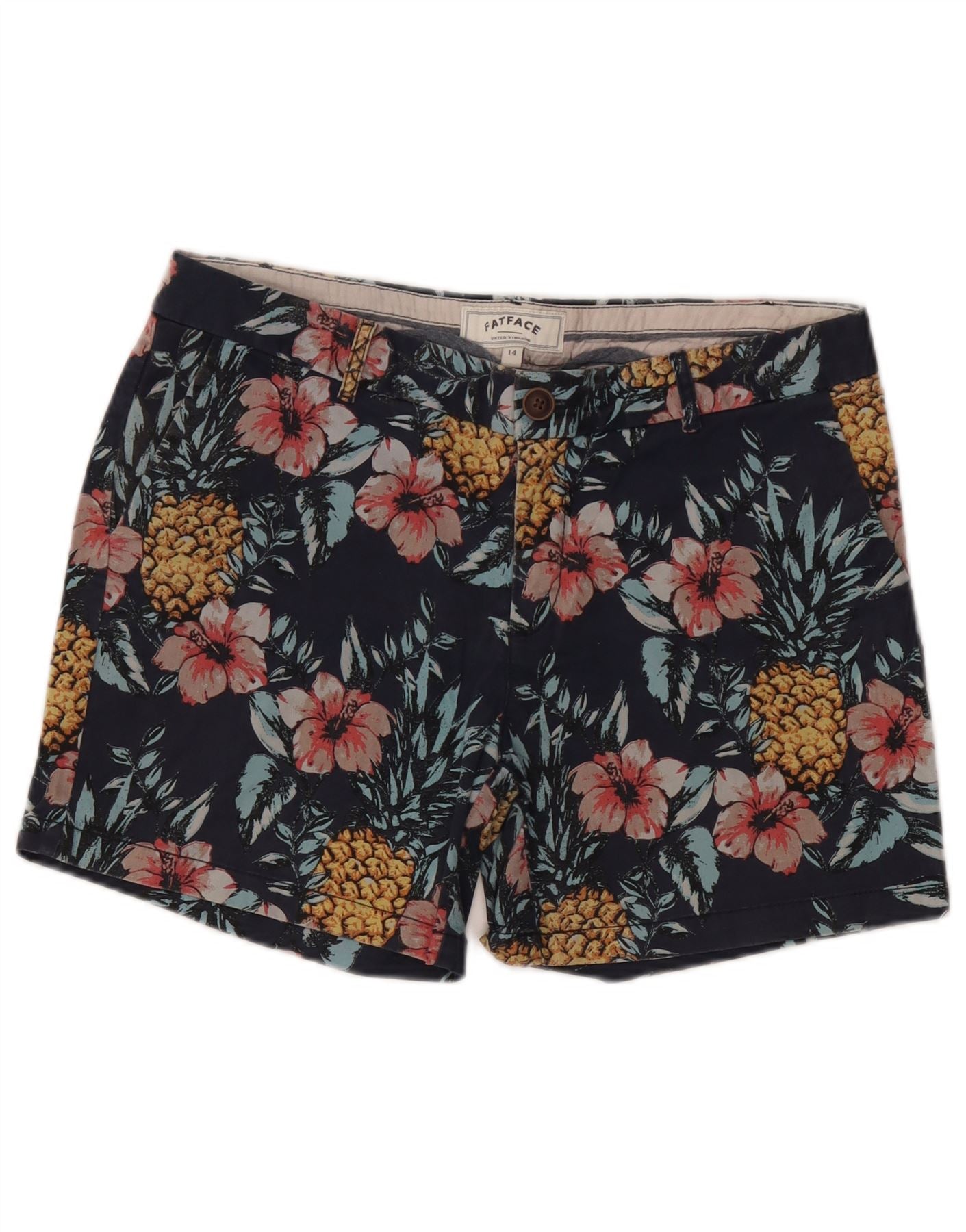 FAT FACE Womens Chino Shorts UK 14 Medium W28 Navy Blue Floral Cotton