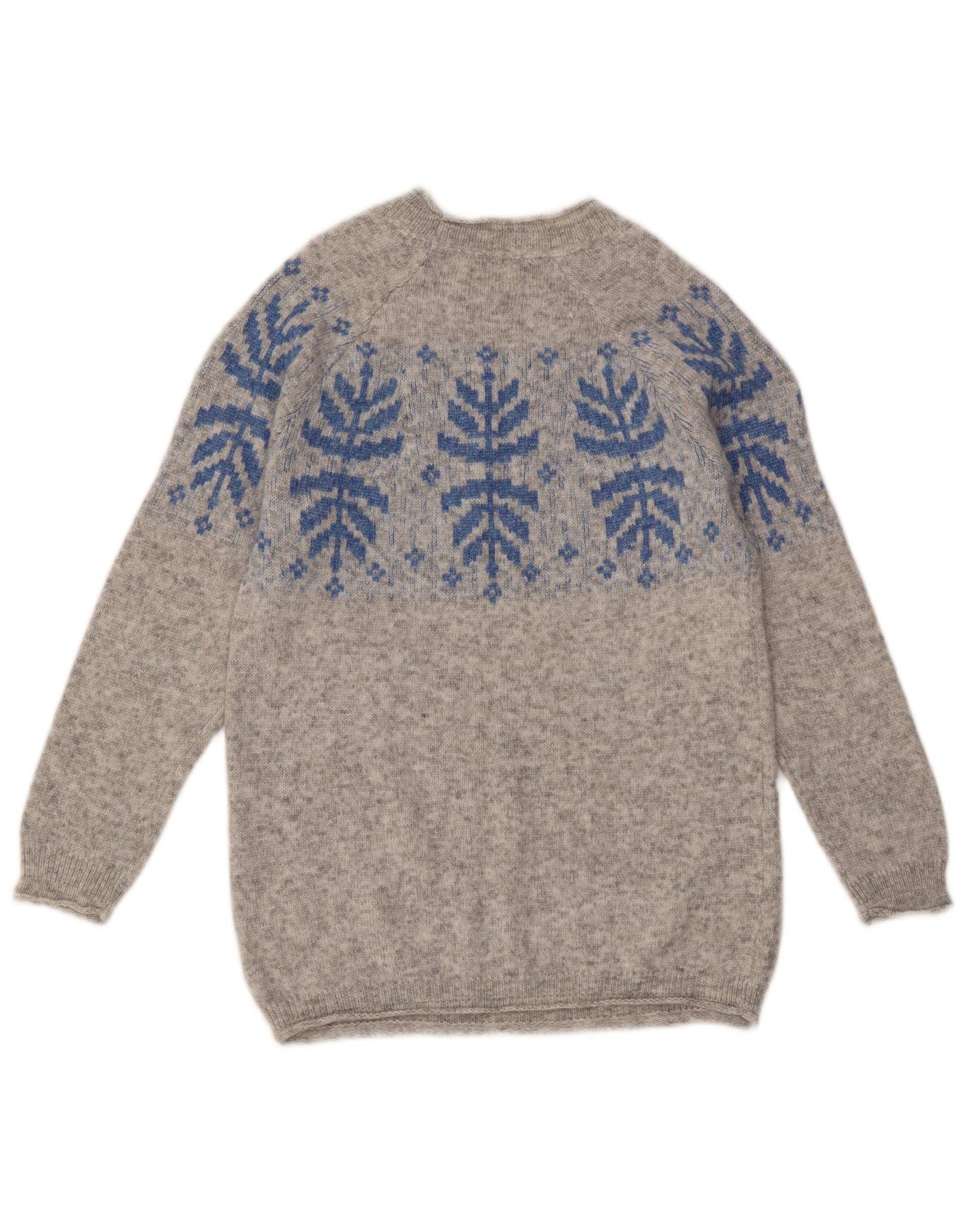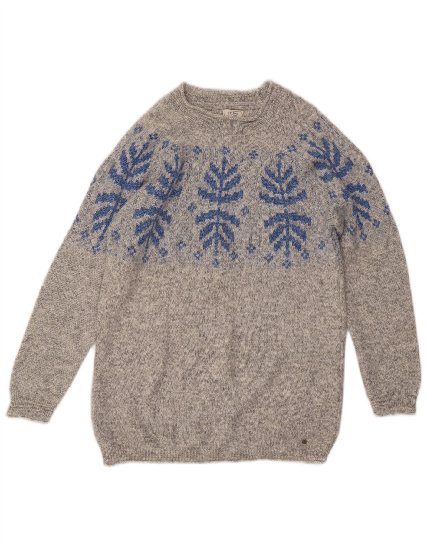 Suéter feminino FAT FACE com gola redonda Reino Unido 10 pequeno cinza Fair Isle