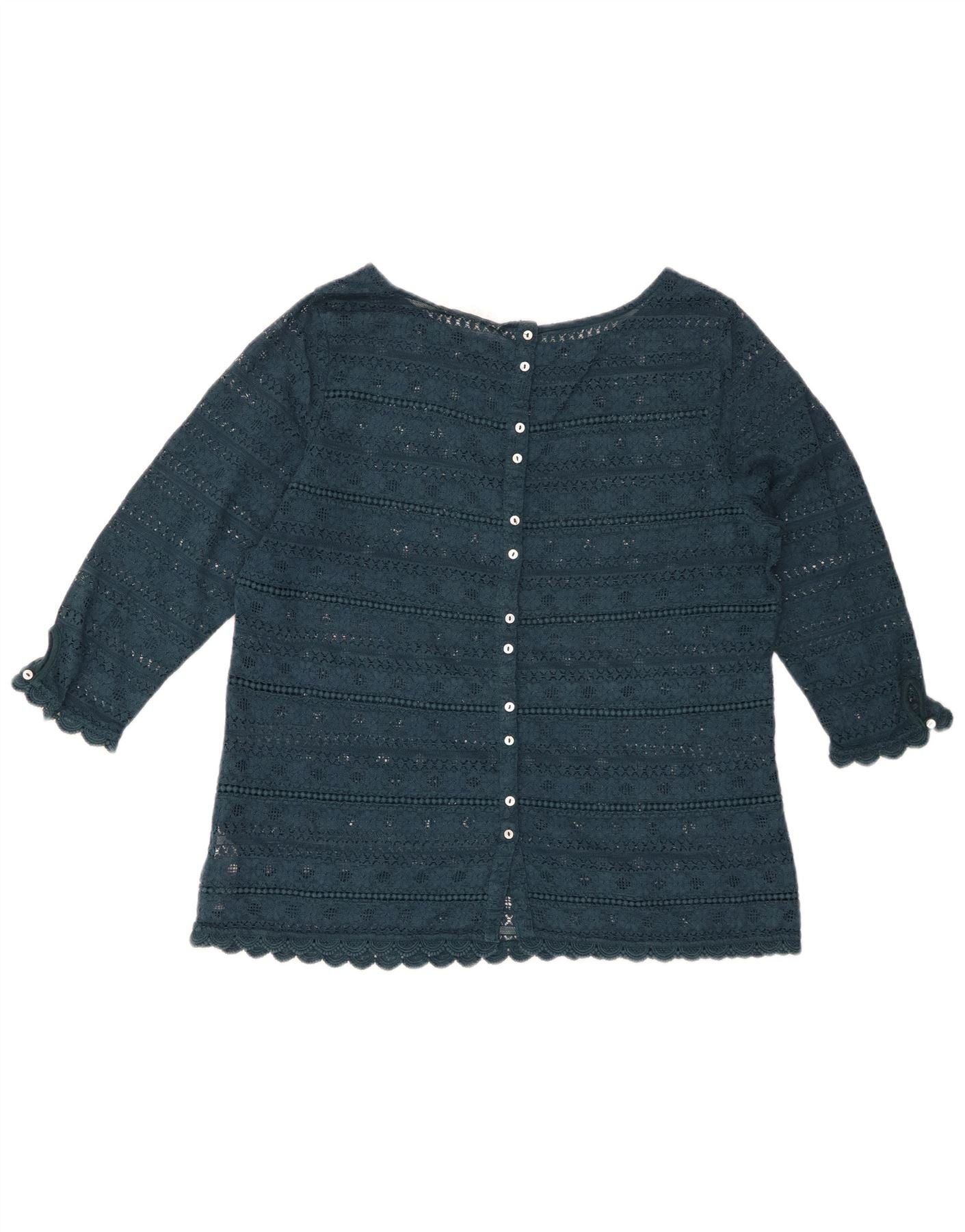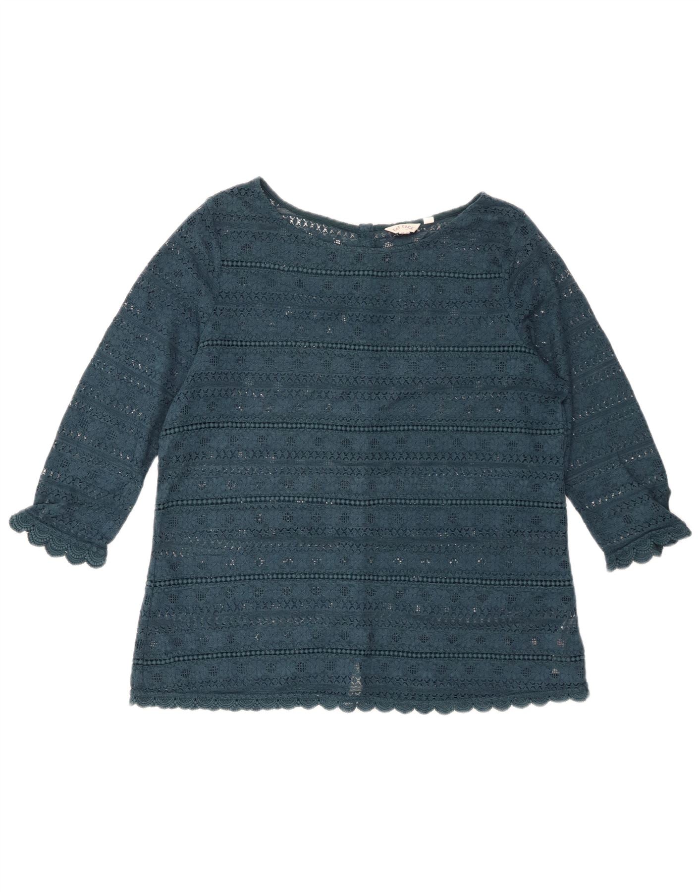 FAT FACE Blusa feminina de renda manga 3/4 Top Reino Unido 14 grande algodão floral verde
