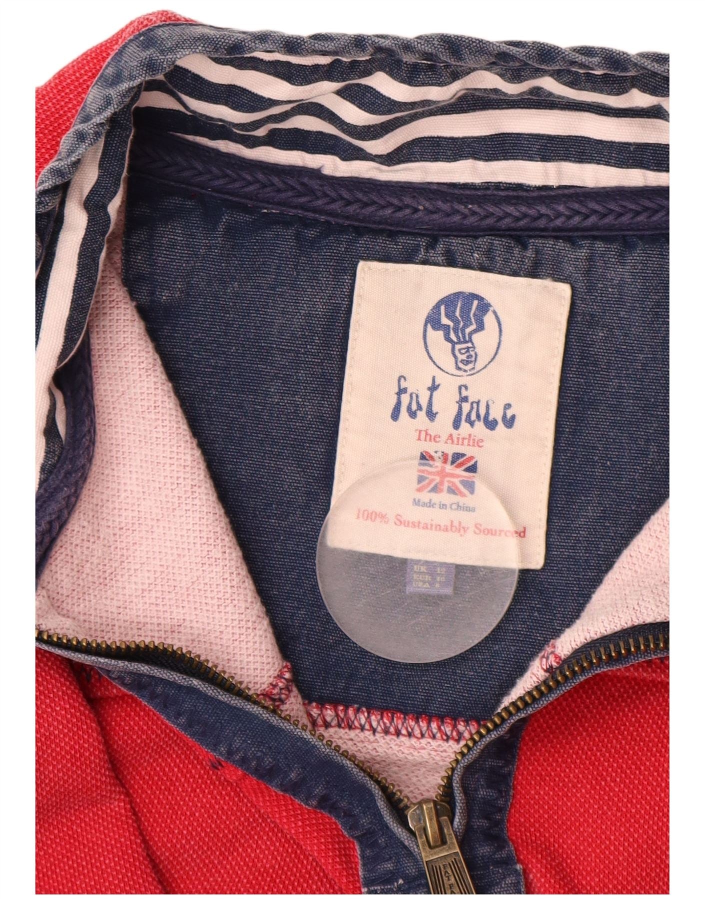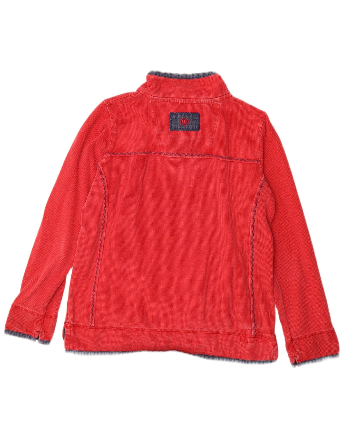 FAT FACE Suéter feminino com gola e zíper Reino Unido 12 algodão vermelho médio