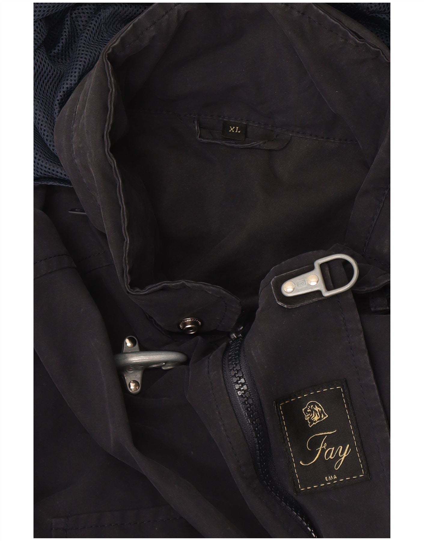 Jaqueta utilitária masculina Fay com capuz UK 42 XL azul marinho