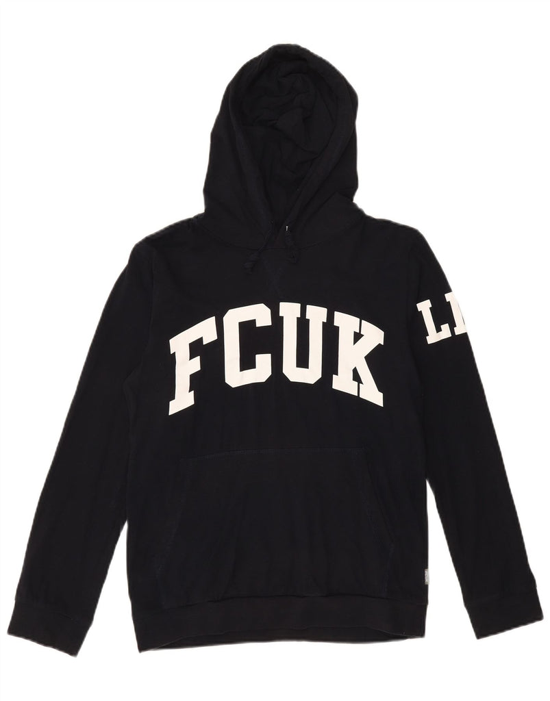 FCUK moletom feminino com capuz gráfico Reino Unido 12 algodão preto médio