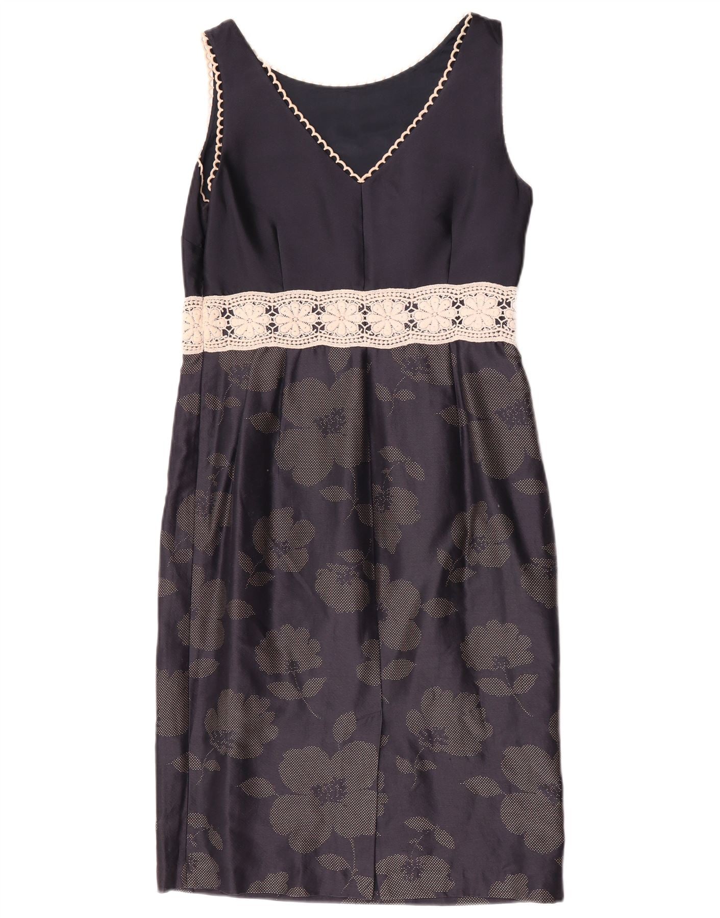Vestido bainha feminino Fenn Wright Manson Reino Unido 10 pequeno azul marinho floral