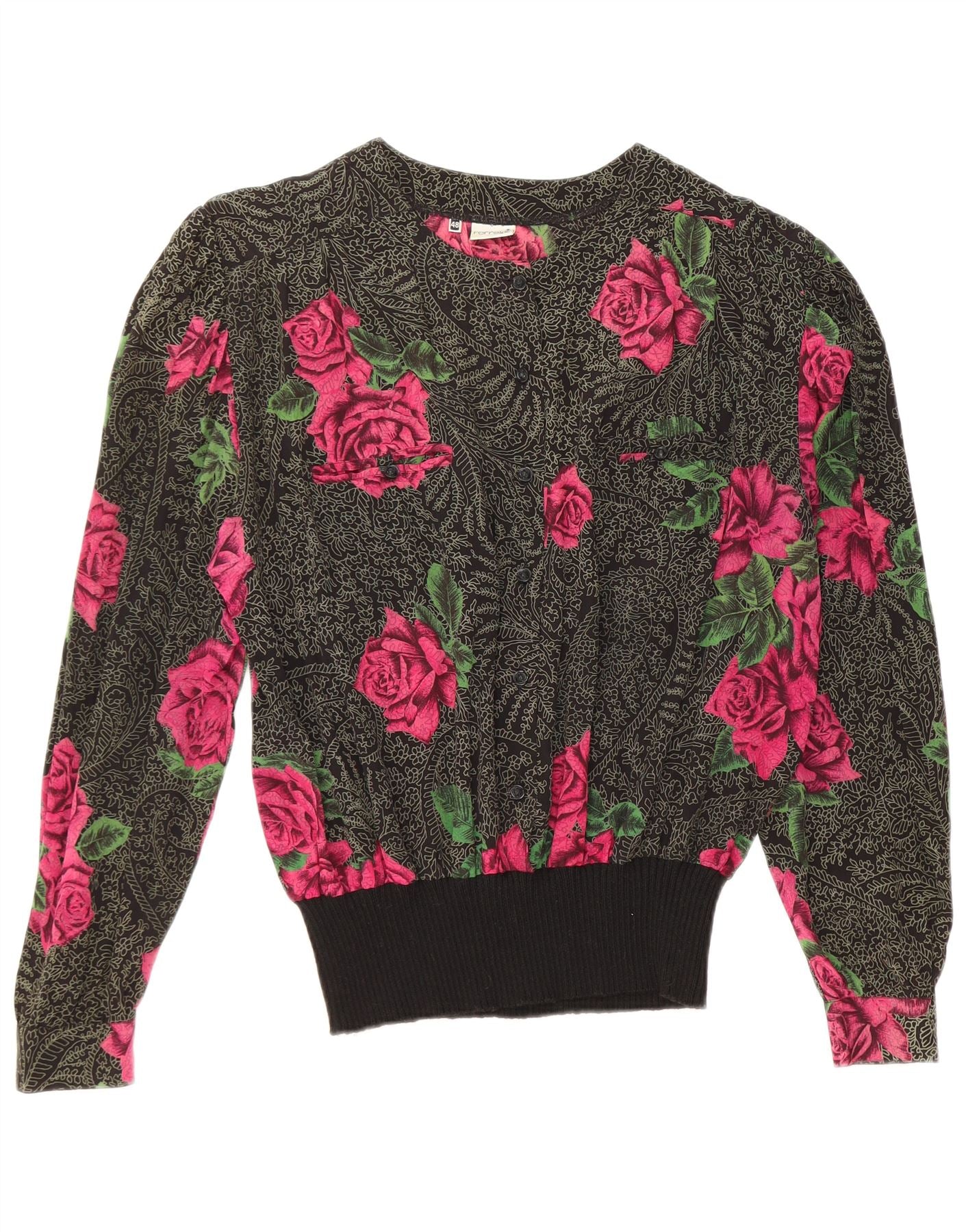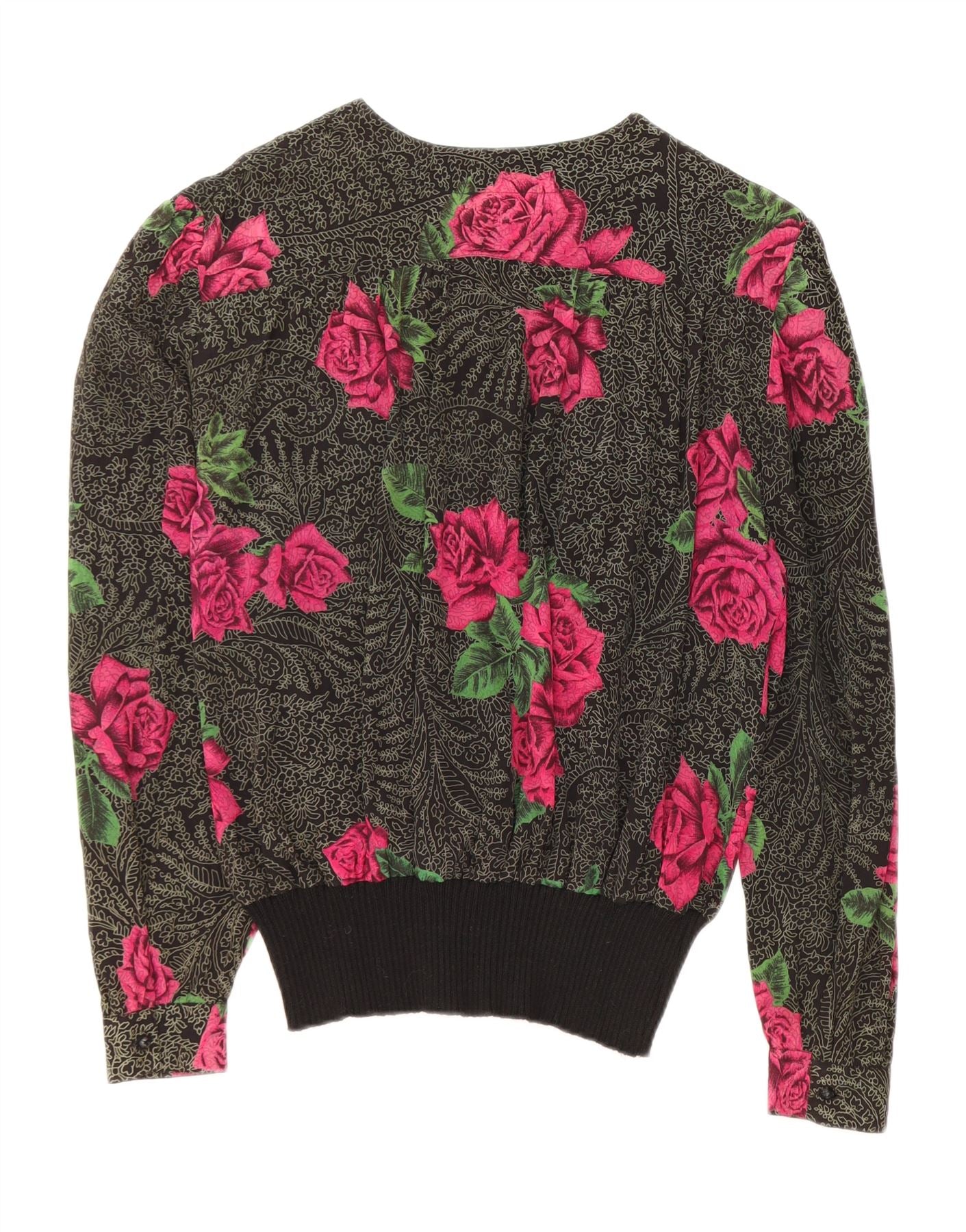 Blusa feminina de manga comprida FERRETTI IT 48 XL seda floral preta