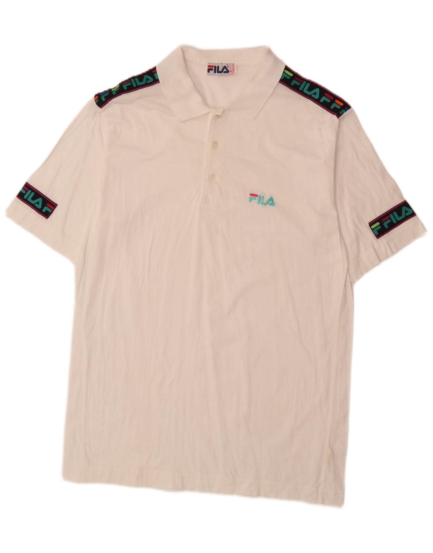 Camisa polo gráfica masculina FILA IT 50 algodão colorblock branco médio