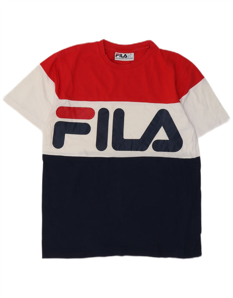 Camiseta masculina gráfica FILA Top pequeno algodão colorblock multicolorido