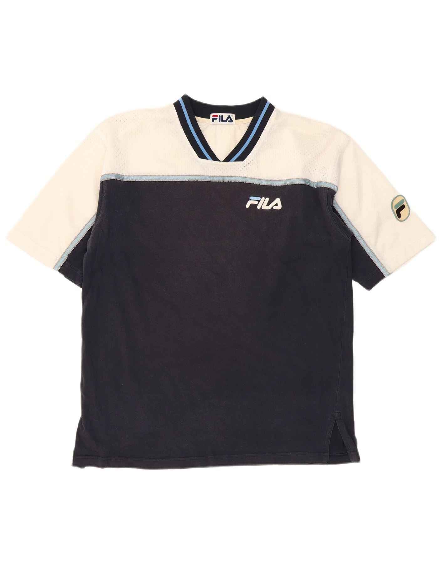 Camiseta masculina FILA top pequeno algodão colorblock azul marinho