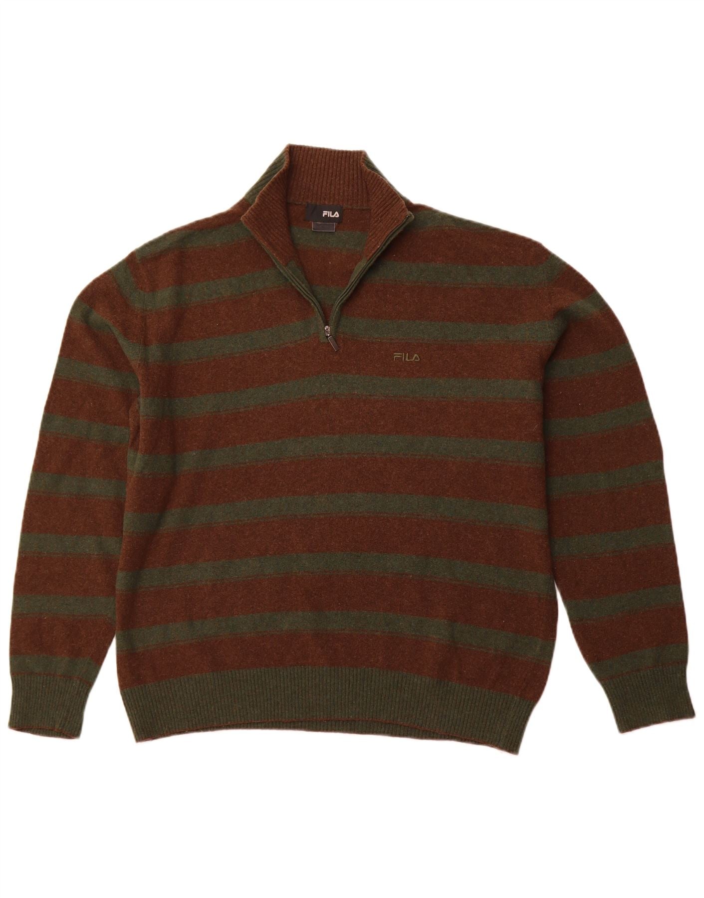 Suéter masculino FILA com zíper e gola XL listrado marrom
