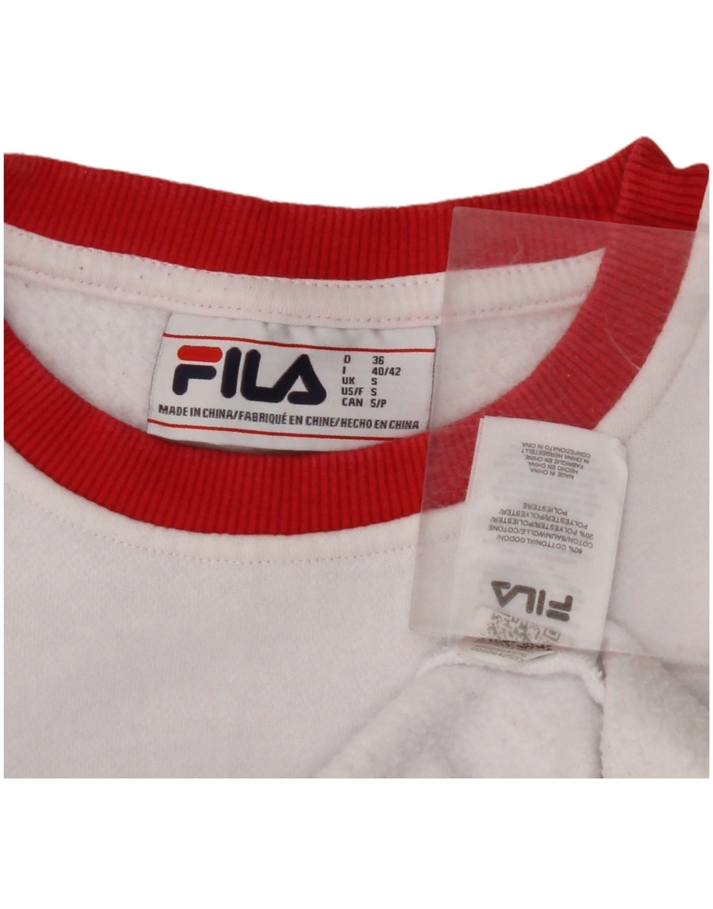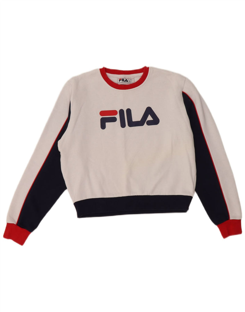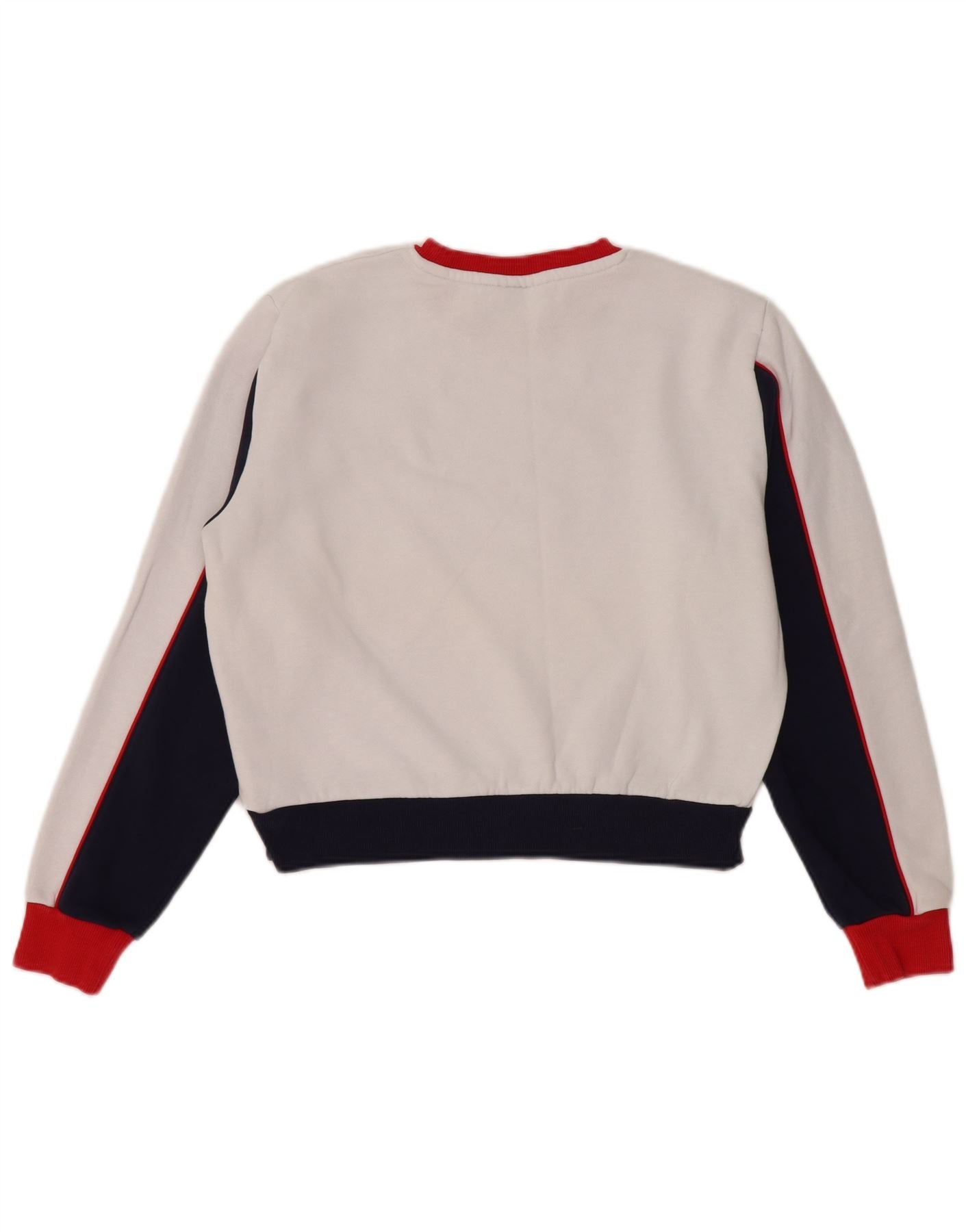 FILA Suéter feminino cropped oversized UK 10 pequeno bloco colorido branco
