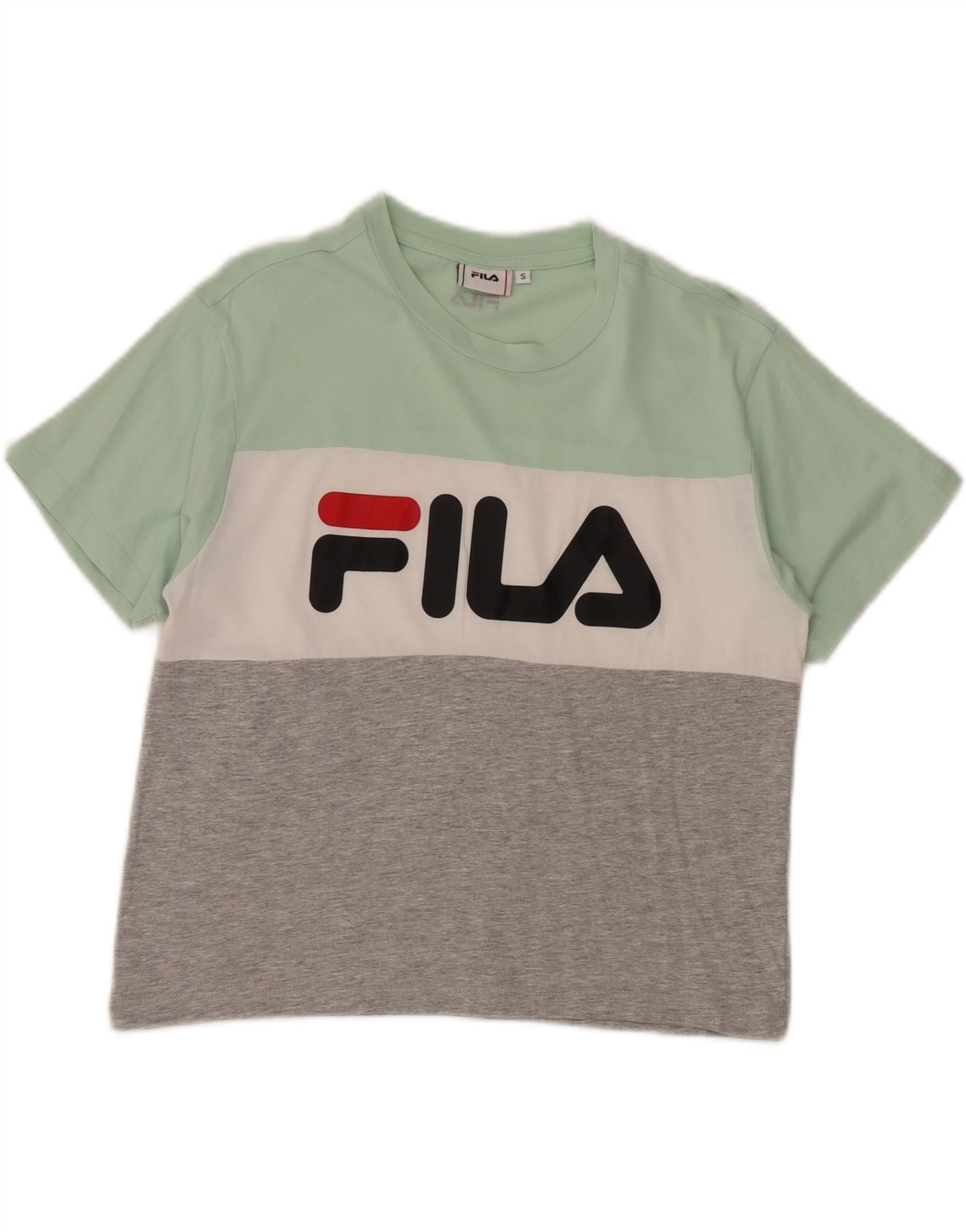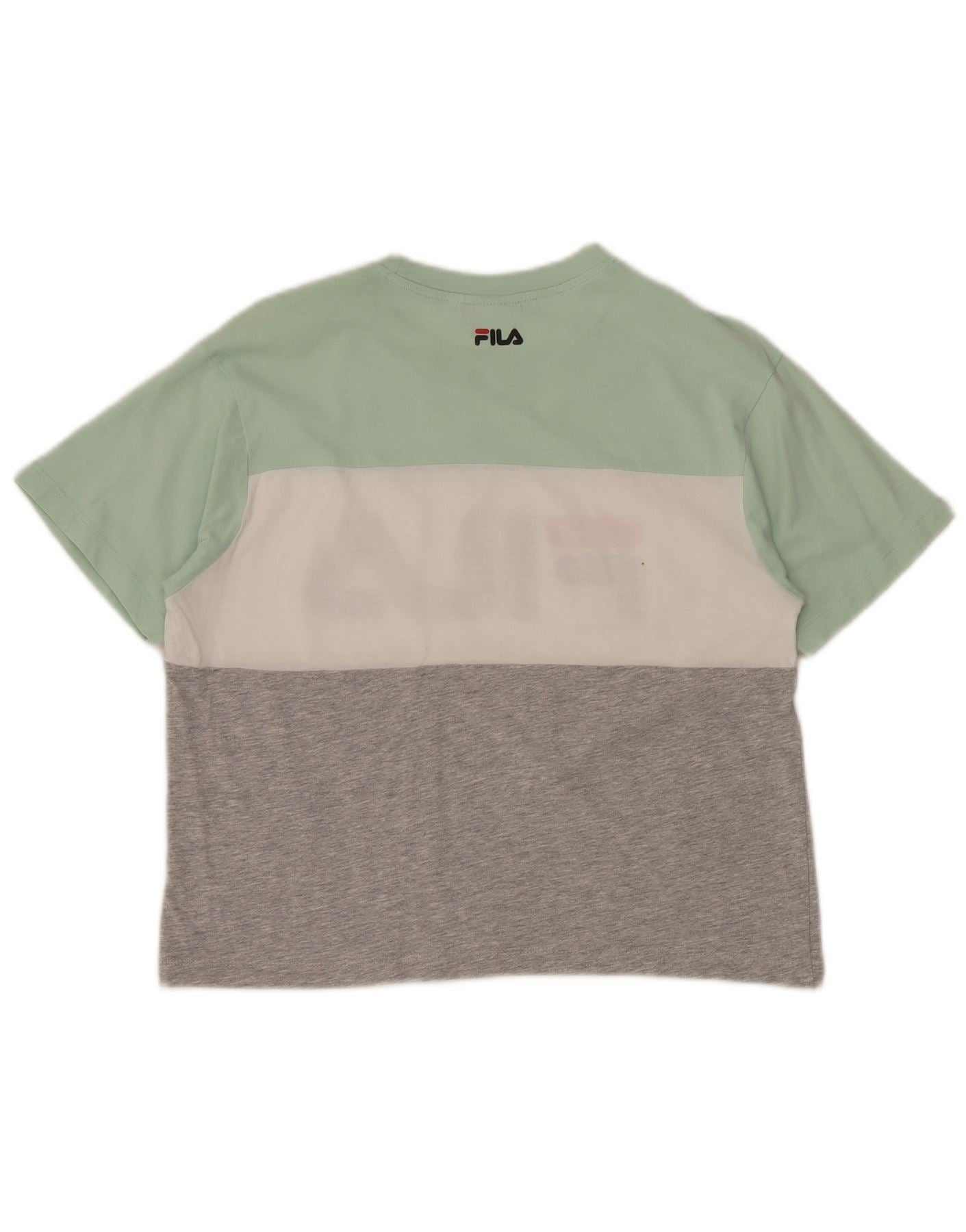 Camiseta feminina gráfica FILA UK 10 pequeno bloco colorido verde