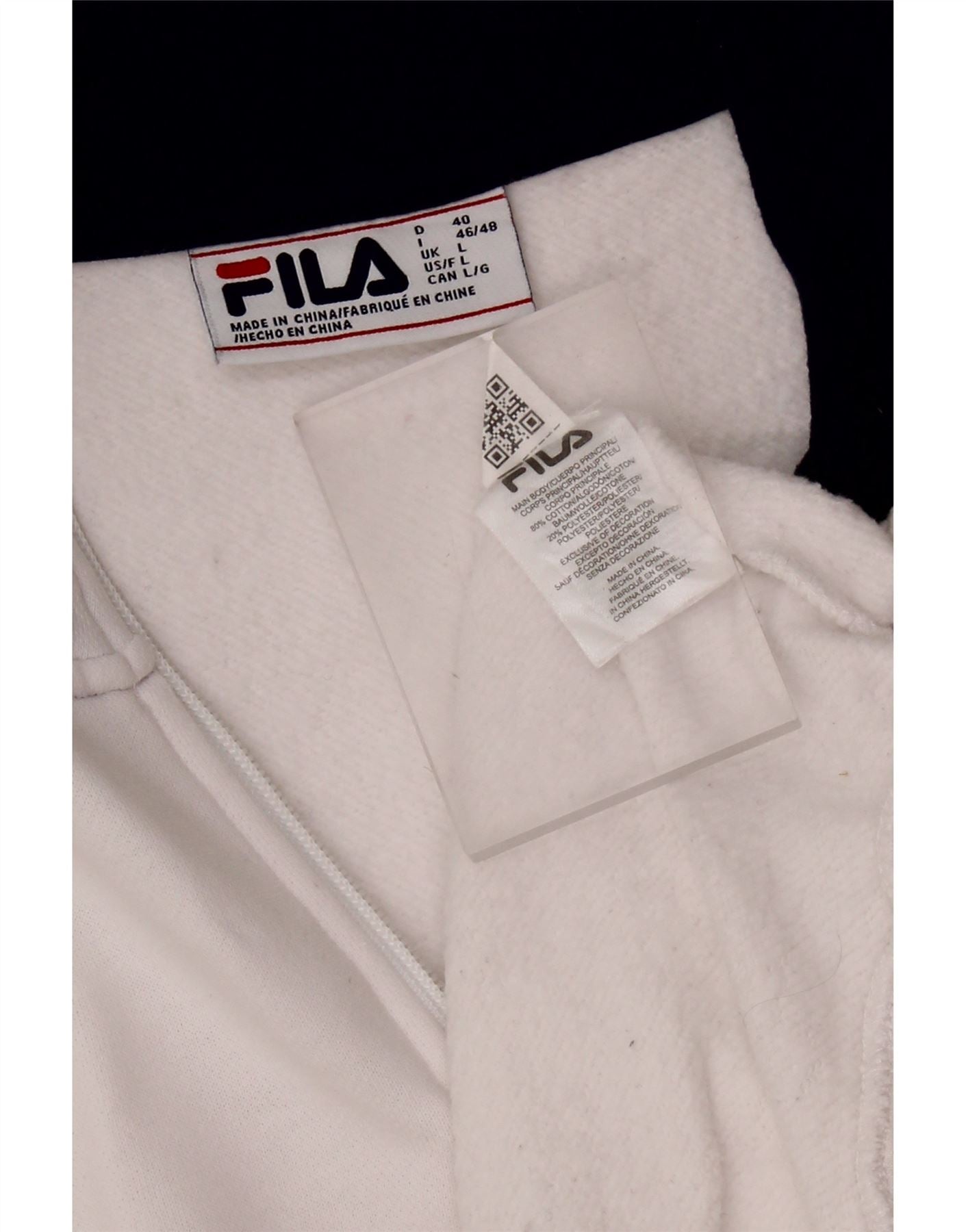 Suéter feminino FILA com gola e zíper gráfico Reino Unido 16 grande algodão branco