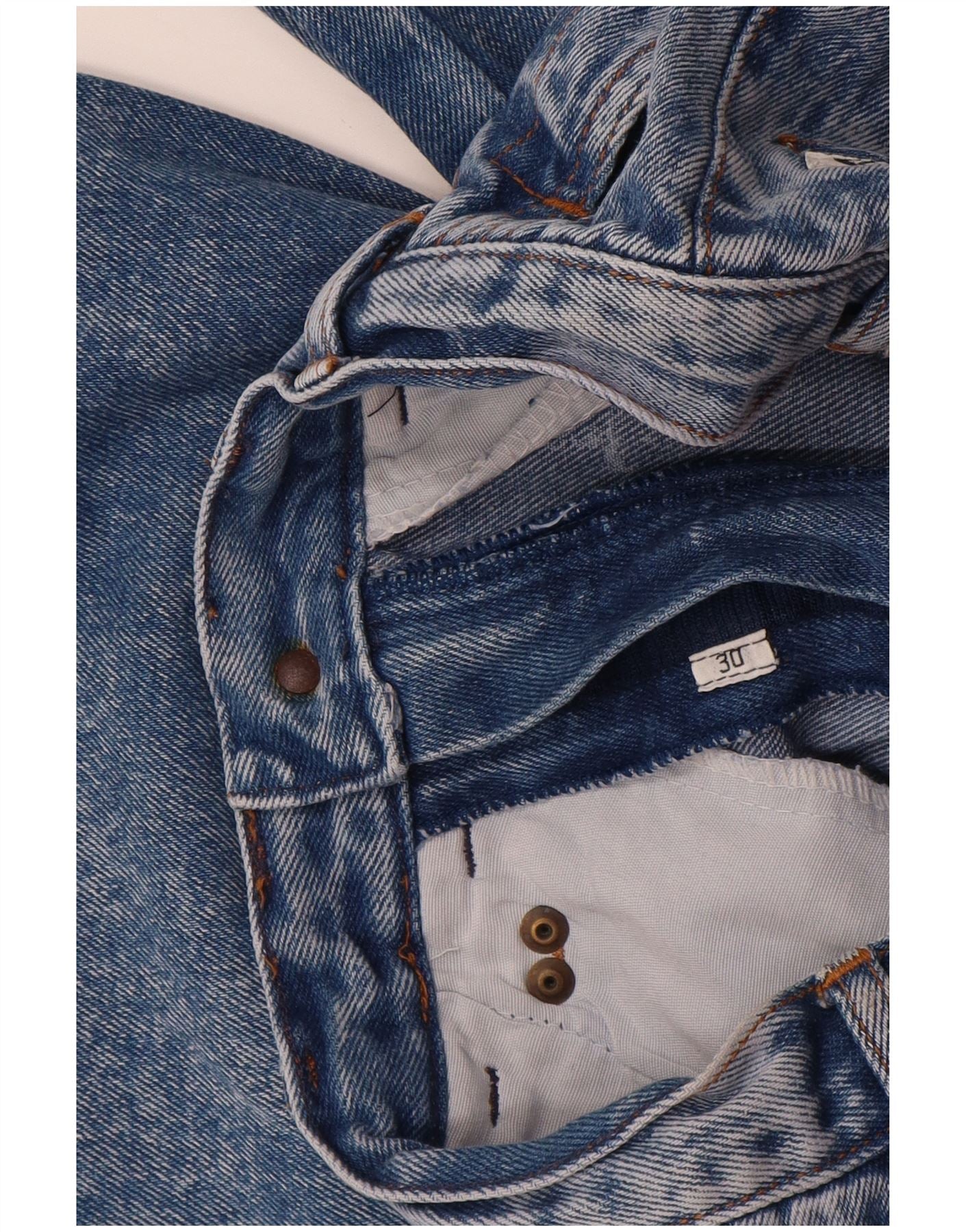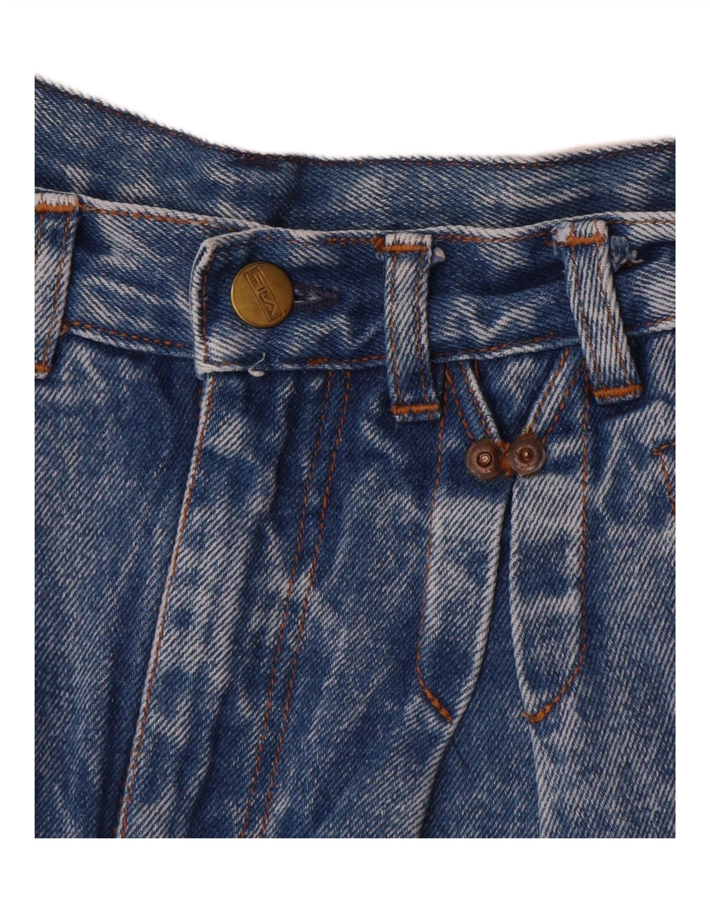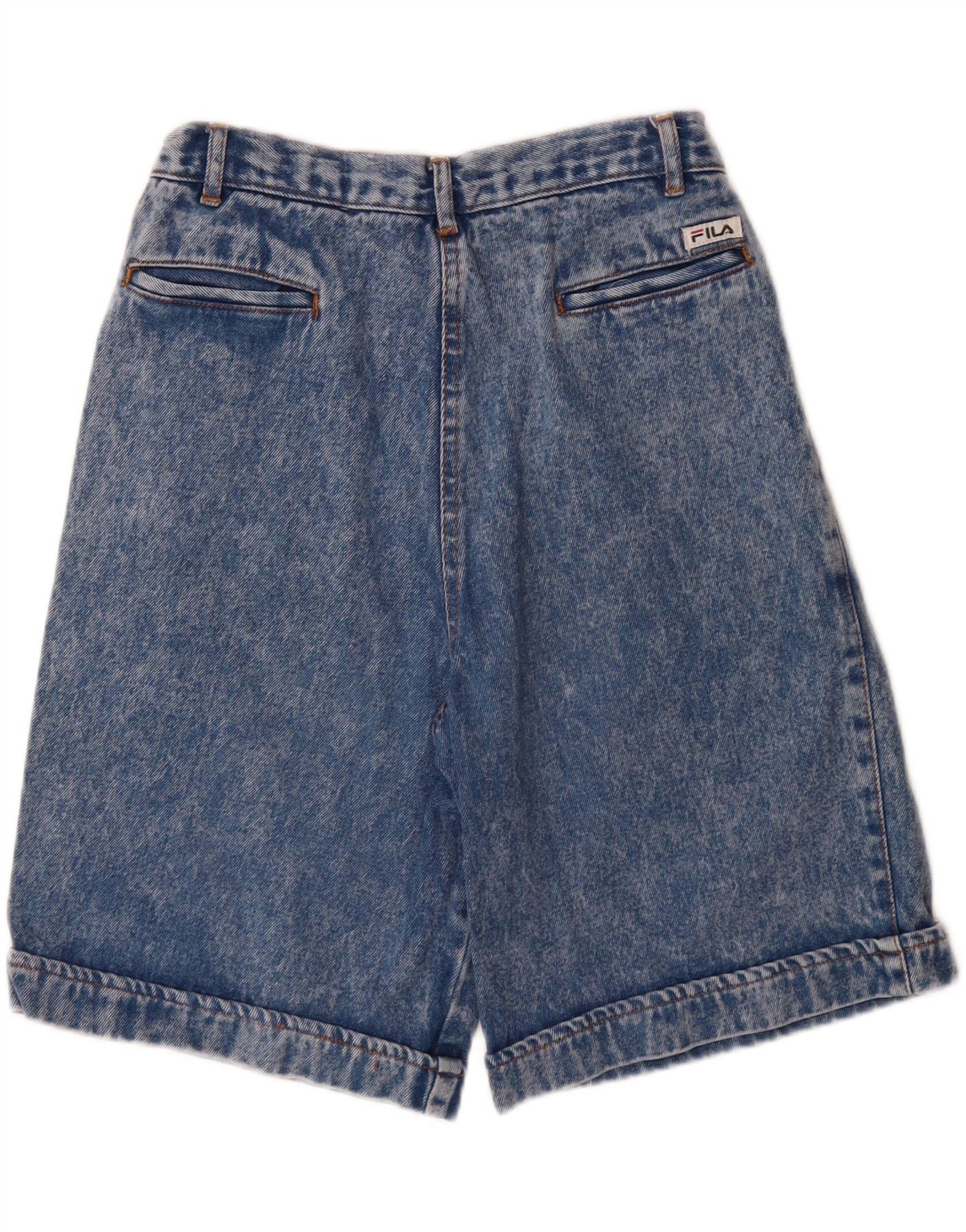 Shorts jeans feminino de cintura alta com perna larga FILA W30 algodão azul médio