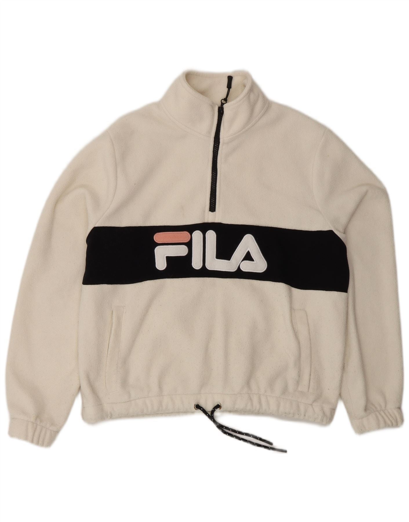 Jumper feminino de lã gráfico oversized FILA Reino Unido 10 pequeno bloco colorido branco