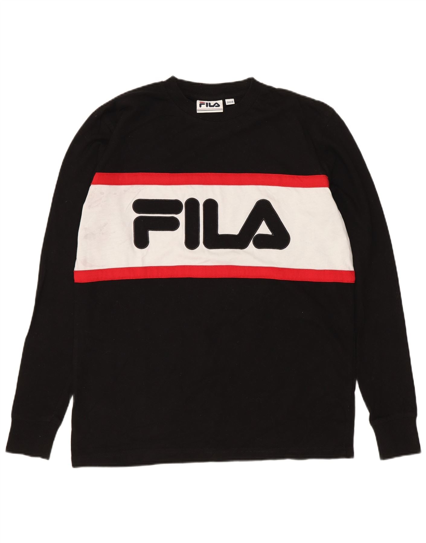 Home > mulheres > Roupas Depop > Fila Top gráfico feminino oversized manga comprida UK 2 2XS preto colorblock