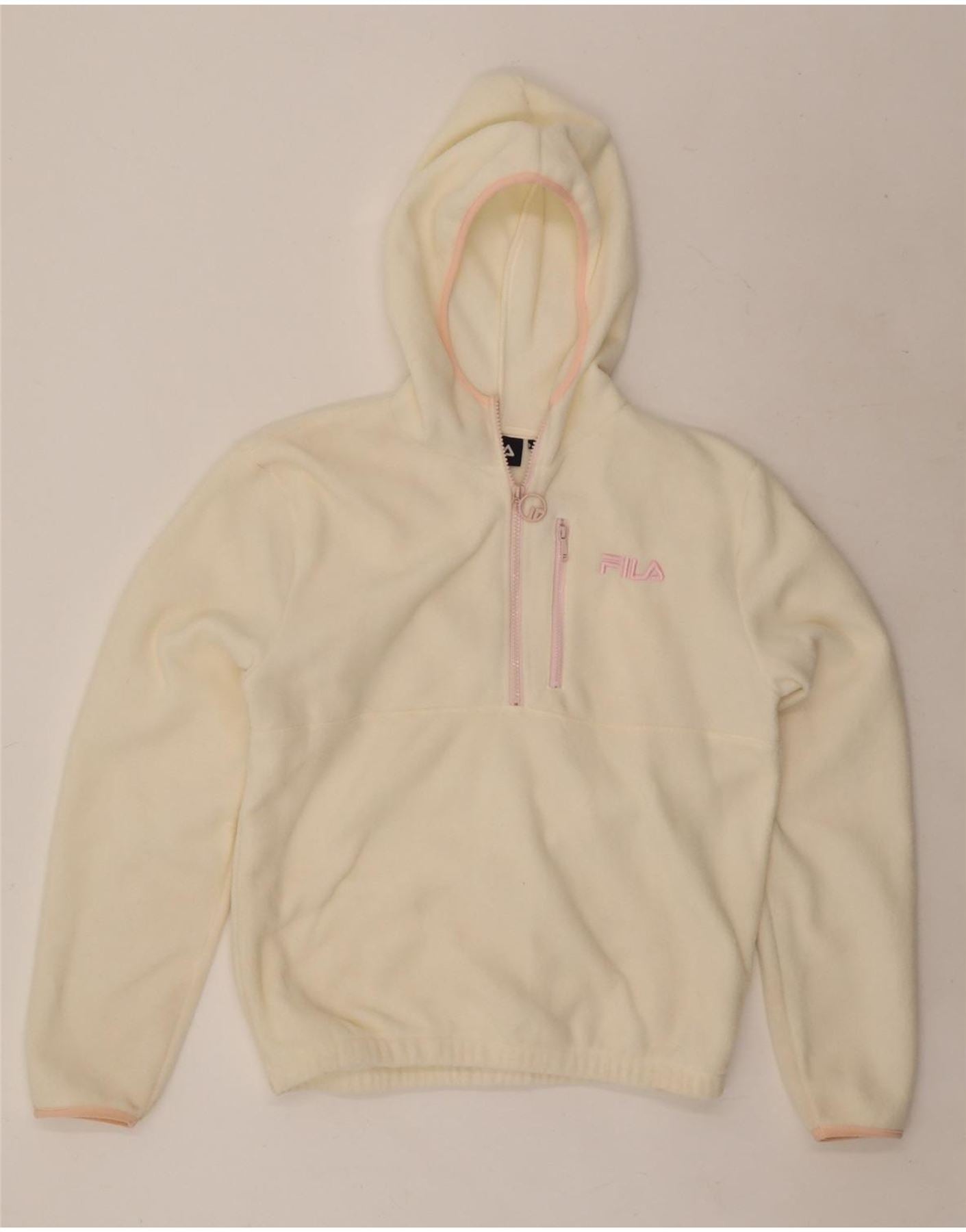 Suéter de lã feminino FILA com capuz grande e gola com zíper UK 6 XS off white