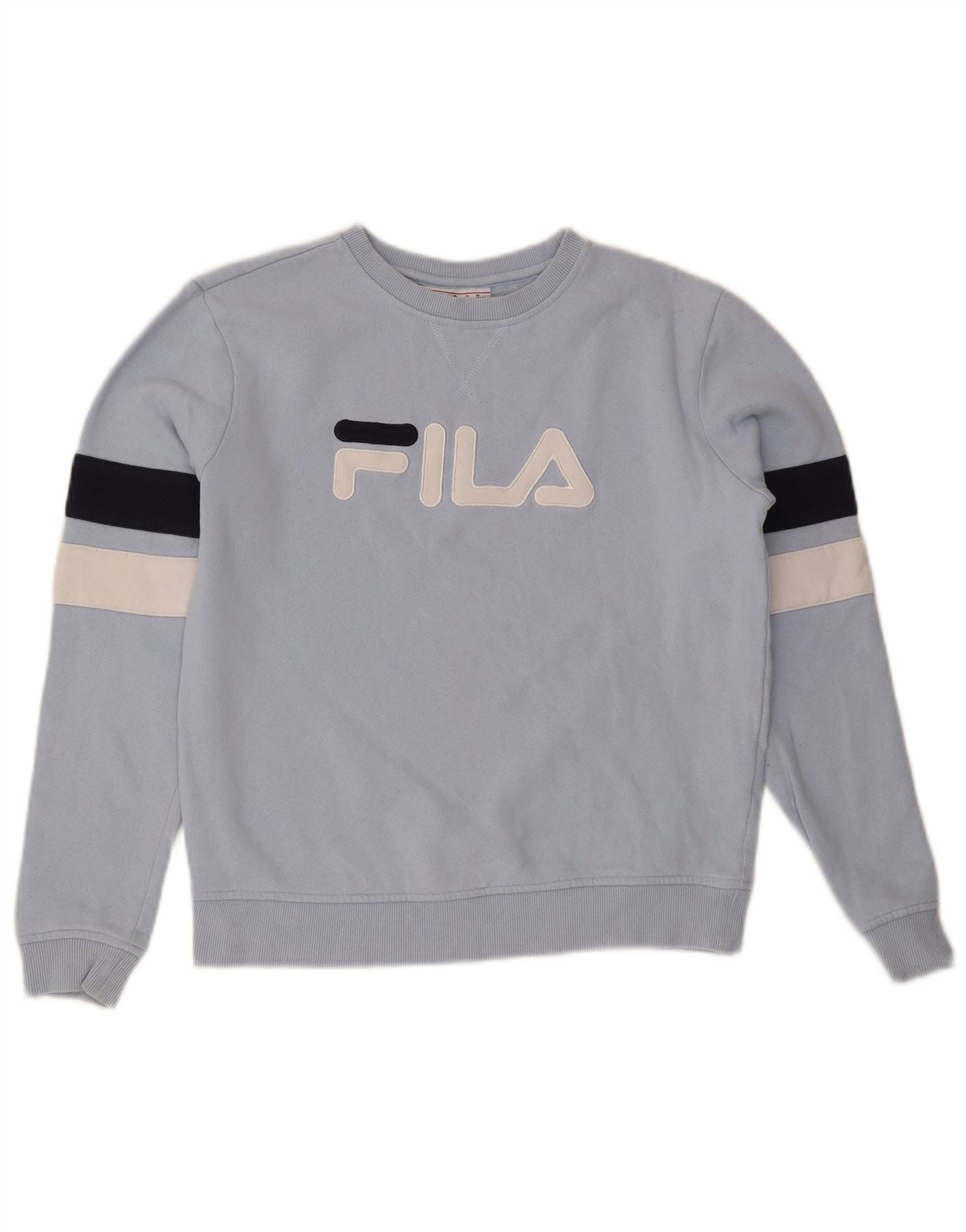 FILA Suéter feminino oversized UK 10 pequeno bloco colorido azul