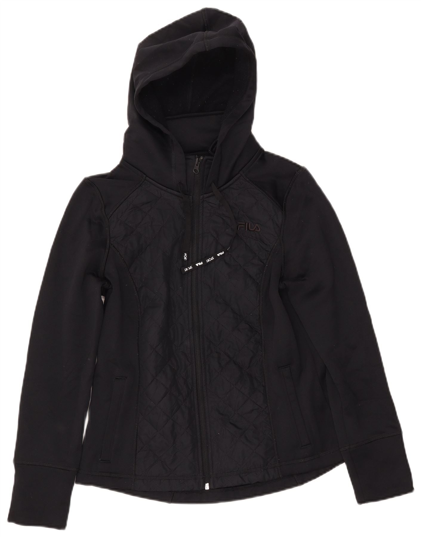 Suéter feminino FILA com capuz e zíper Reino Unido 10 pequeno poliéster preto