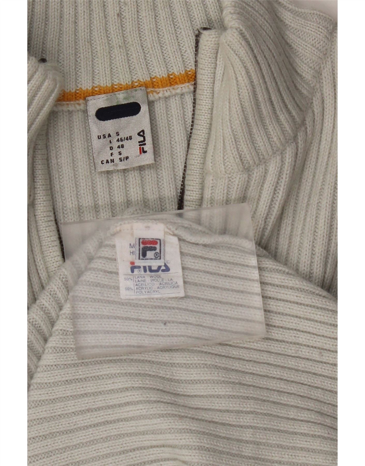 Suéter feminino FILA com gola e zíper UK 10 lã listrada cinza pequena