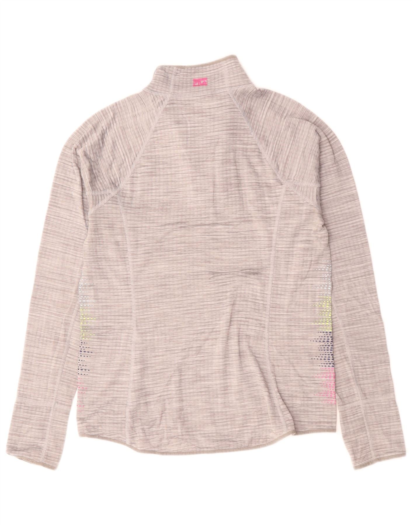 Fila Womens Zip Neck Pullover Treino Top UK 14 Medium Grey Flecked