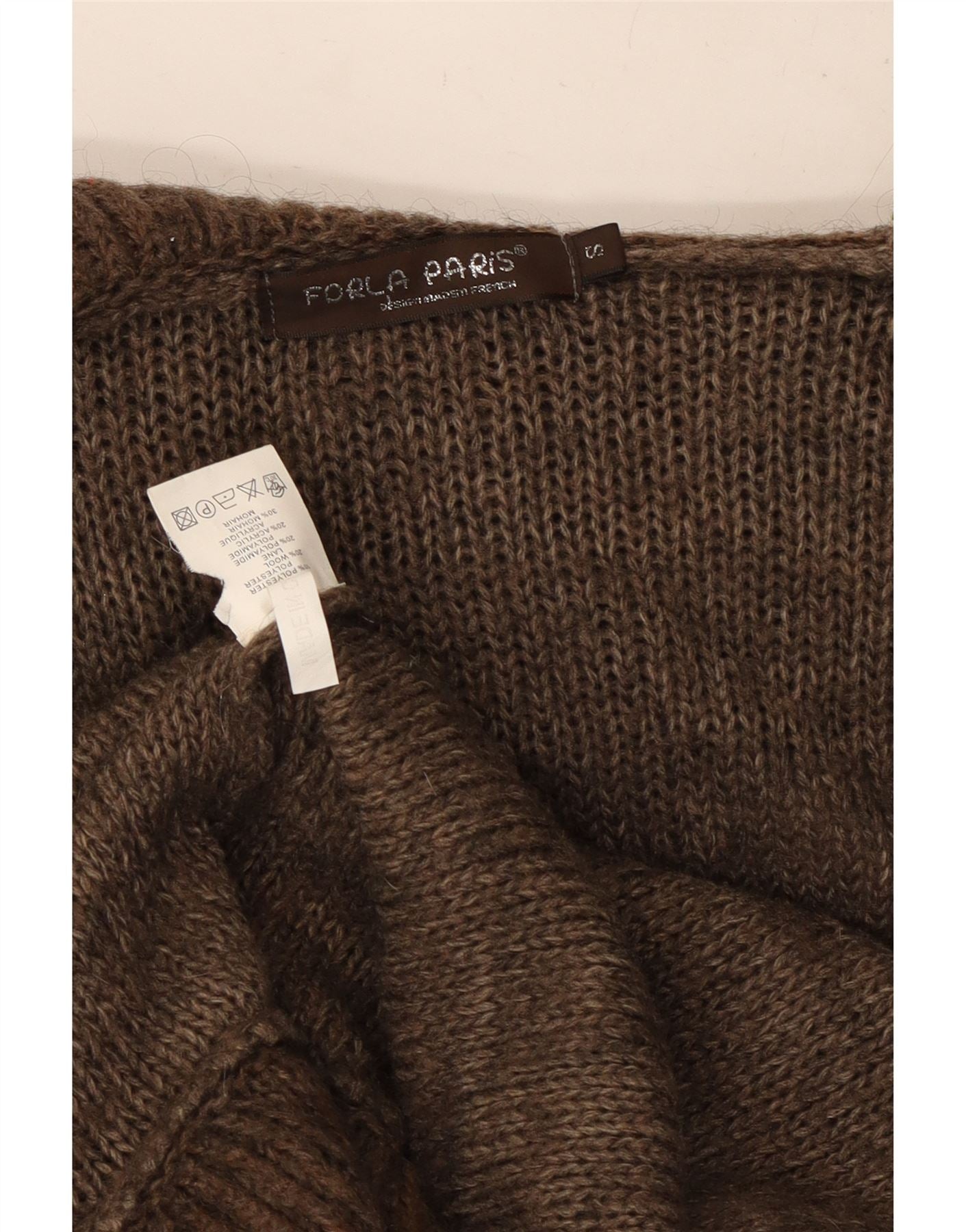 Forla Suéter feminino Paris com babados na frente e cardigan Reino Unido 10 pequeno marrom