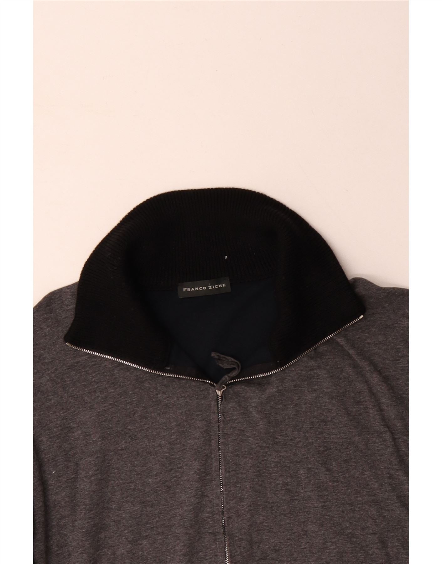 Suéter masculino FRANCO ZICHE com zíper e gola grande bloco colorido cinza