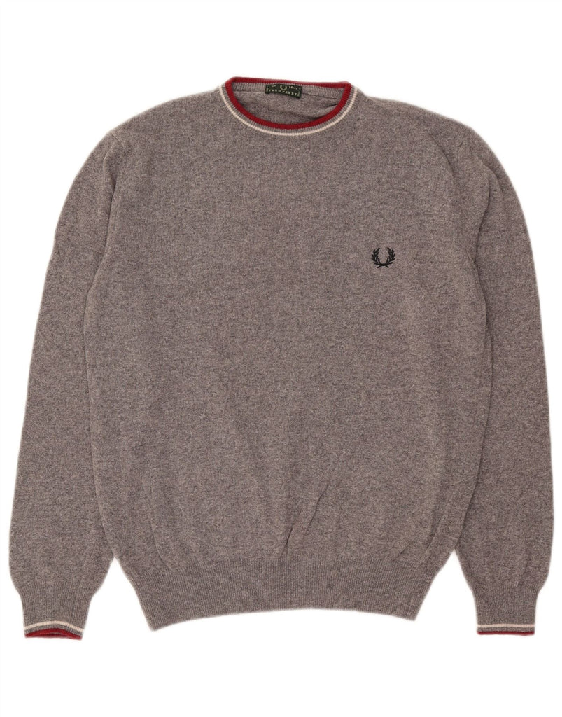 FRED PERRY Boys Crew Neck Jumper Sweater 13-14 Years Grey Wool