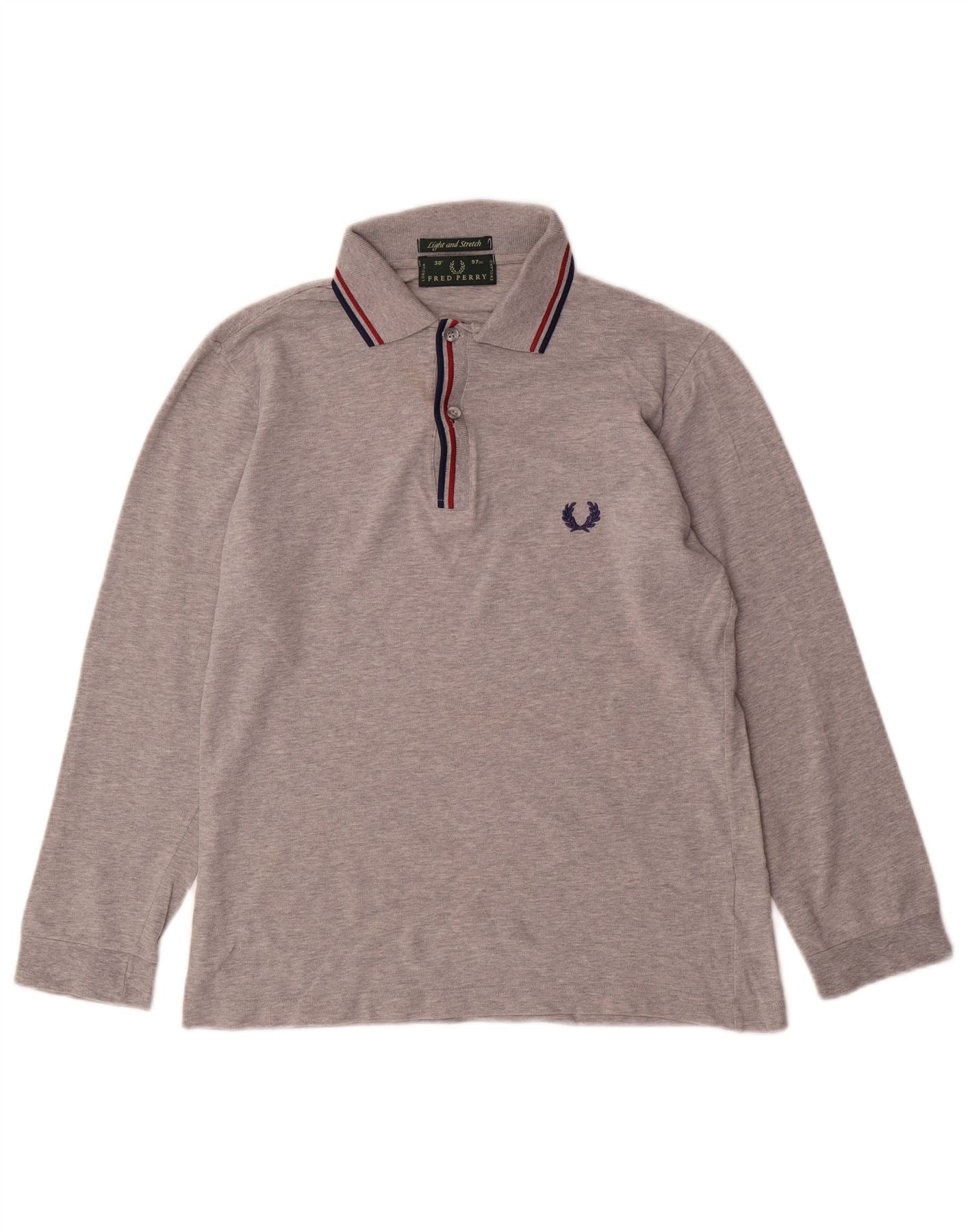 Camisa pólo masculina de manga comprida FRED PERRY algodão cinza pequeno