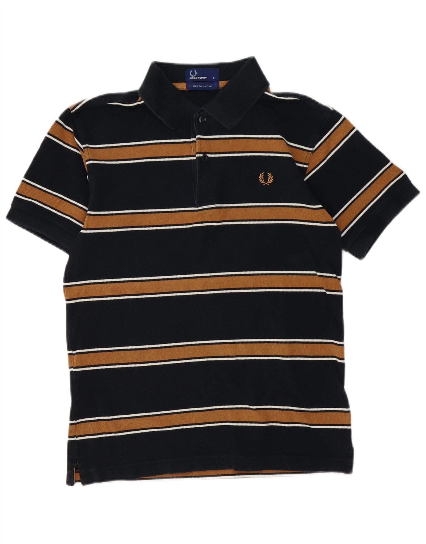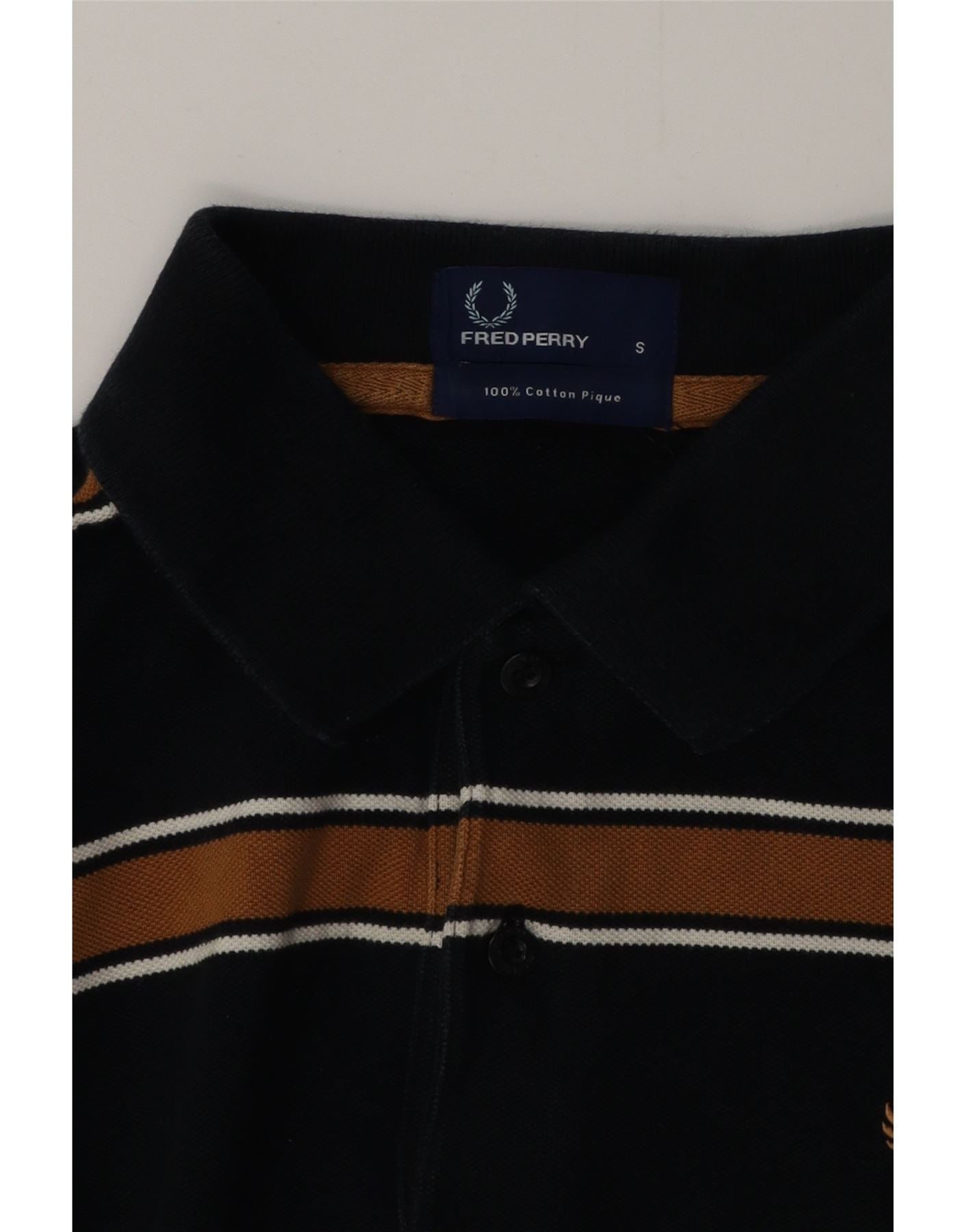 Camisa polo masculina FRED PERRY pequena listrada preta de algodão