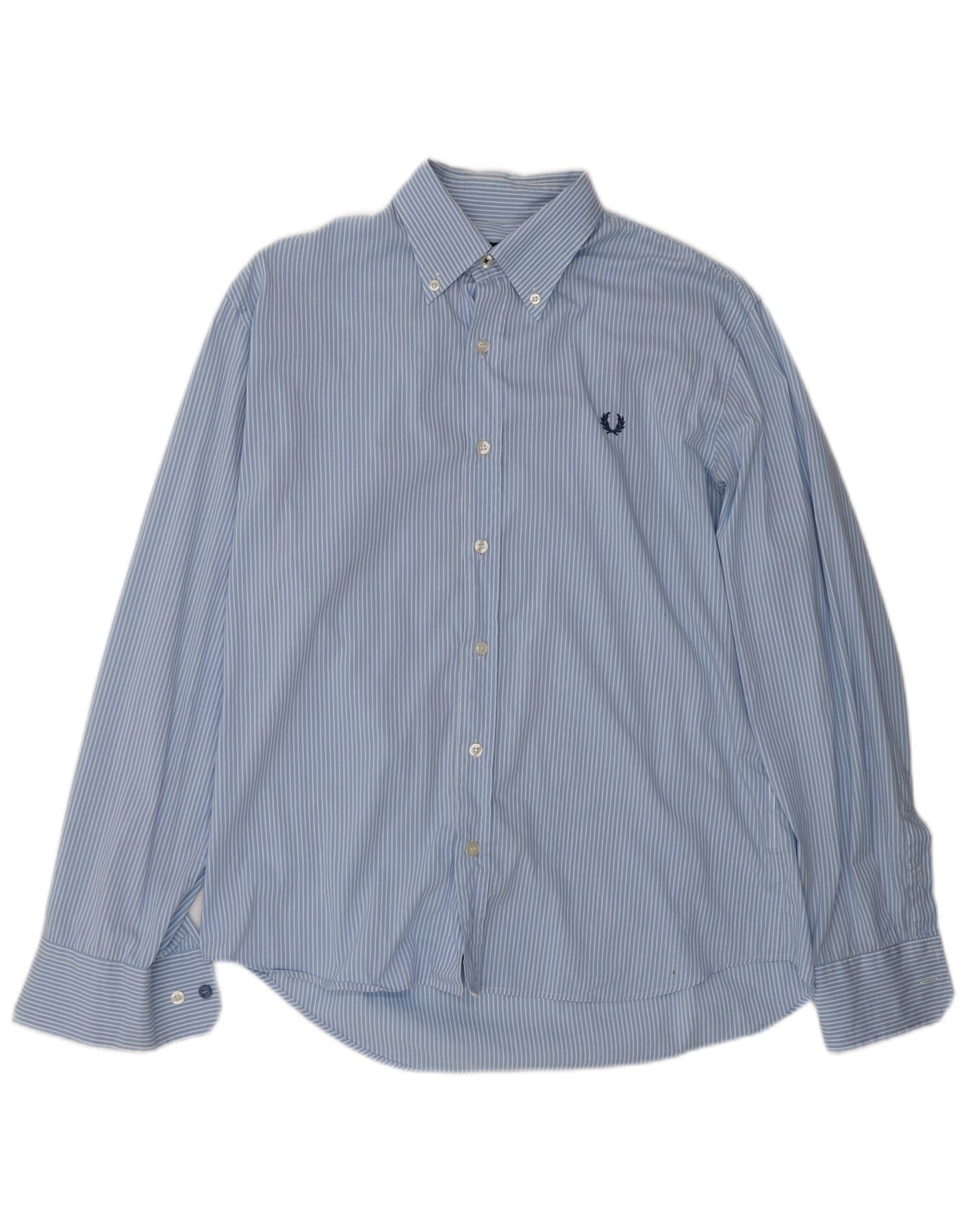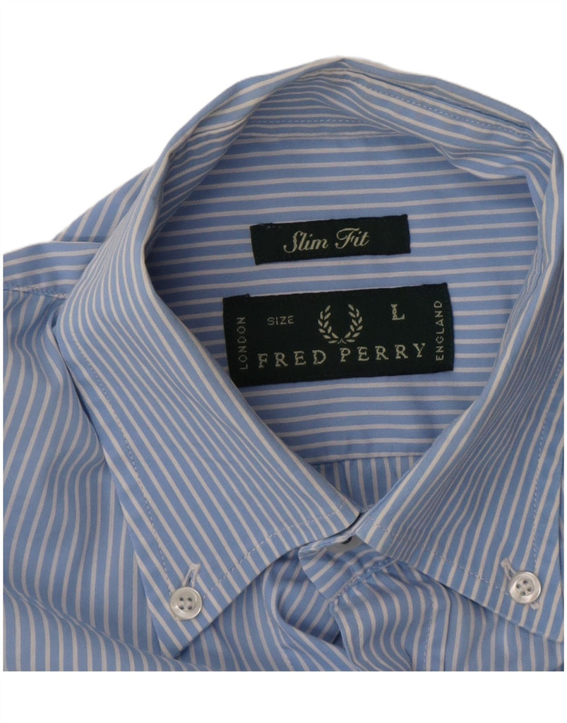 FRED PERRY Camisa masculina slim fit grande algodão listrado azul