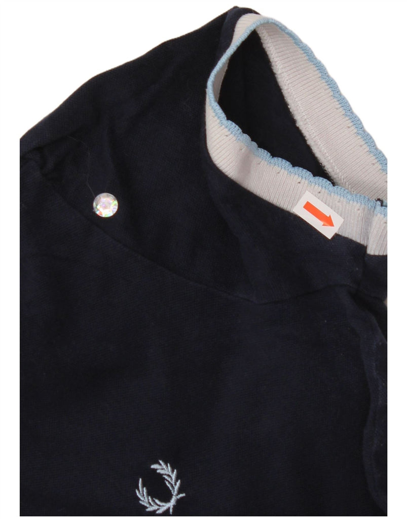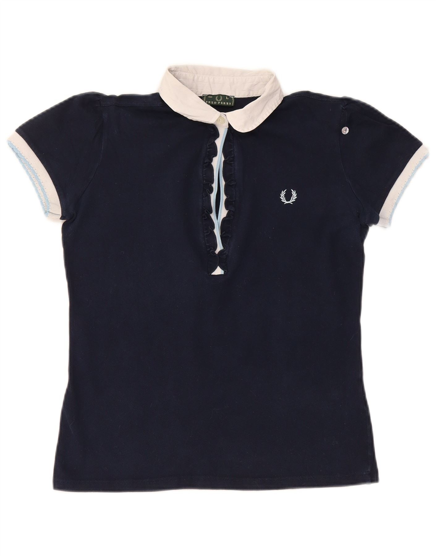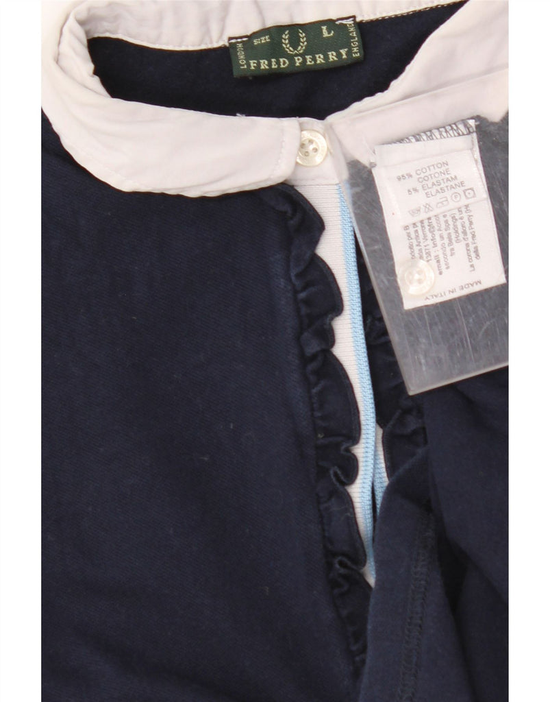 Camisa polo feminina FRED PERRY Reino Unido 14 grande algodão colorblock azul marinho