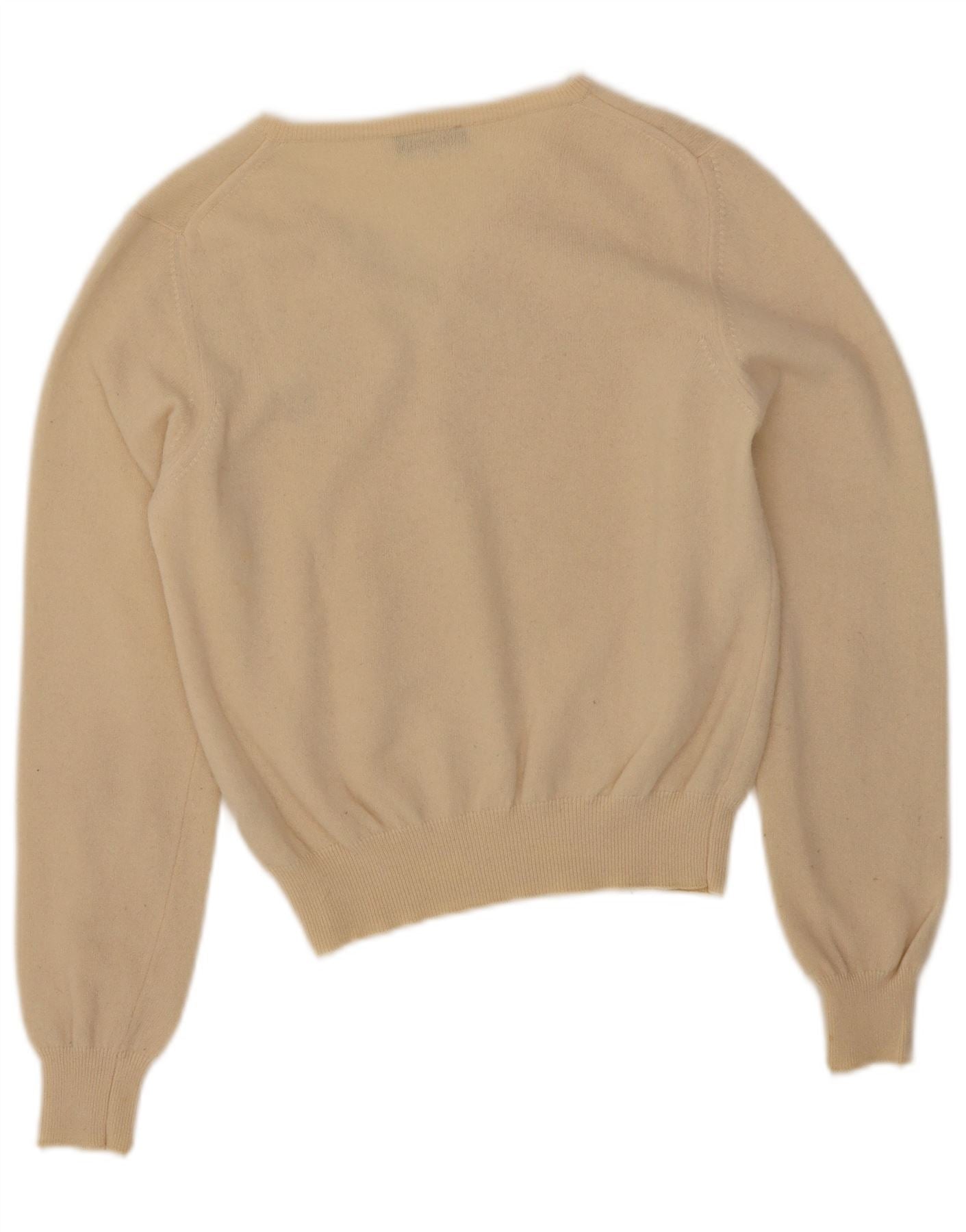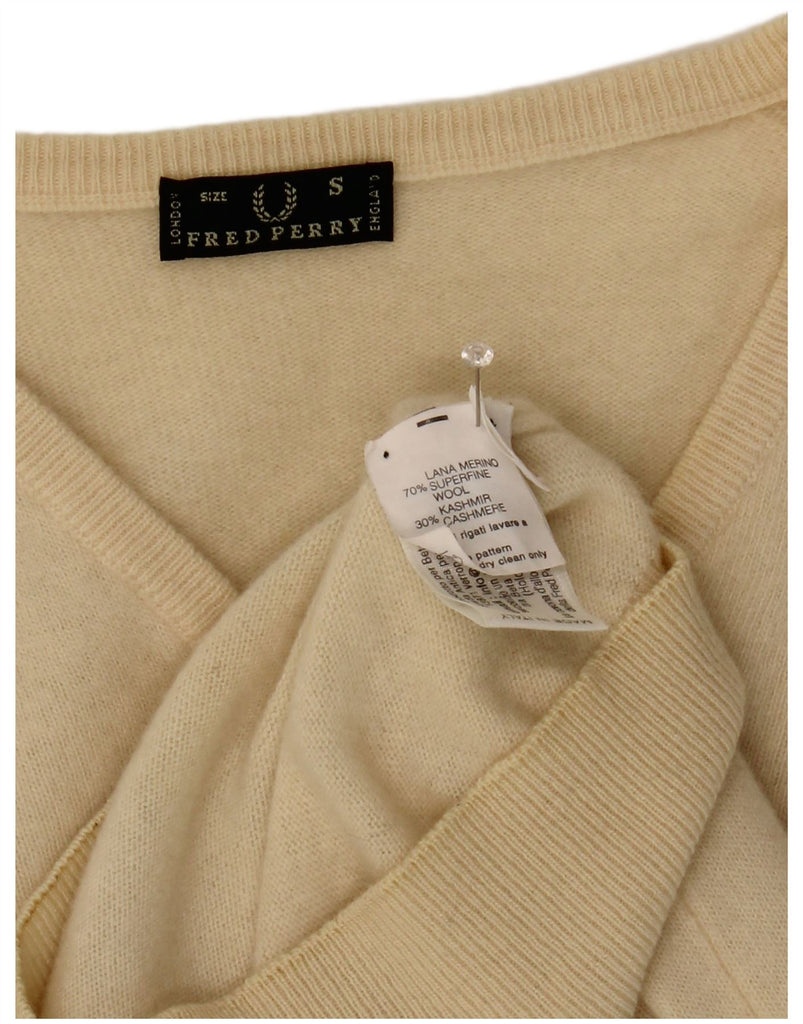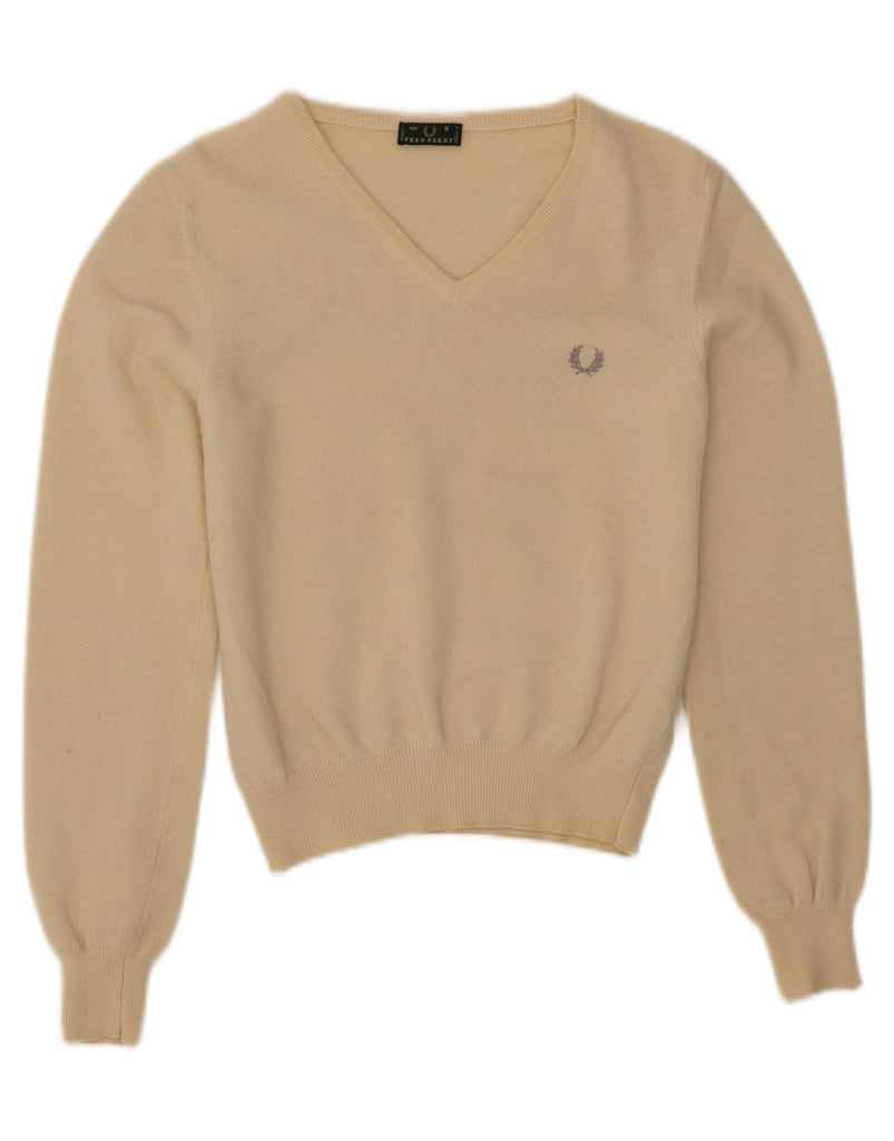 FRED PERRY Womens Crop V-Neck Jumper Sweater UK 10 Small Off White Wool